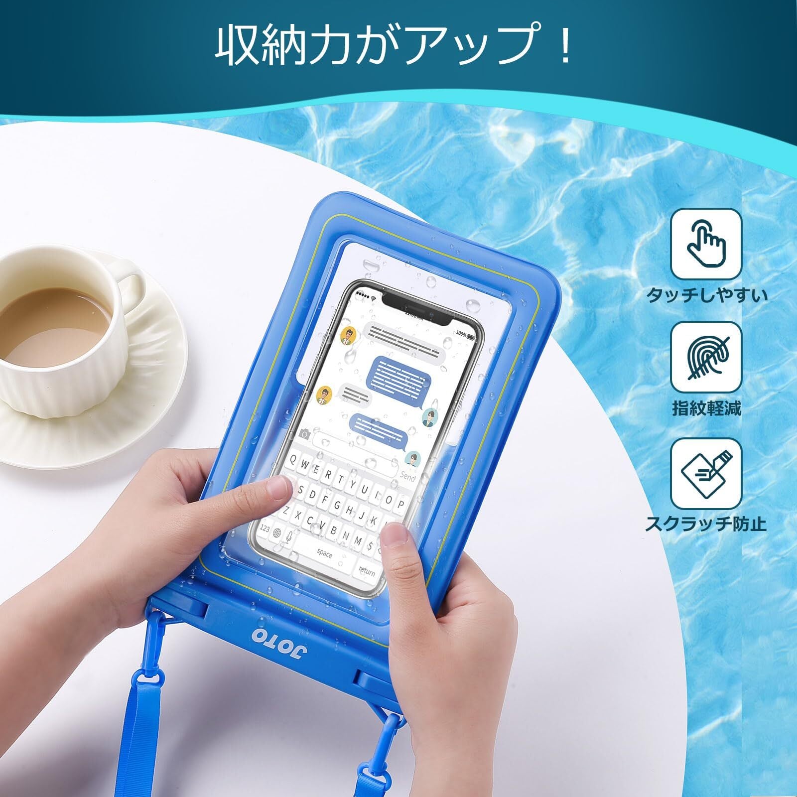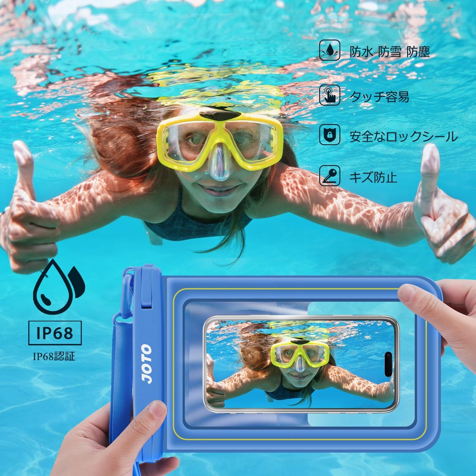 JOTO 防水スマホケース 水に浮く 大容量ドライバッグ IP68認定 完全防塵と防水 お風呂 海 プール 温泉 首掛け式 対応機種:iPhone 16 15 14 13 12 Mini Pro MaxHuawei Xperia android - ブルー