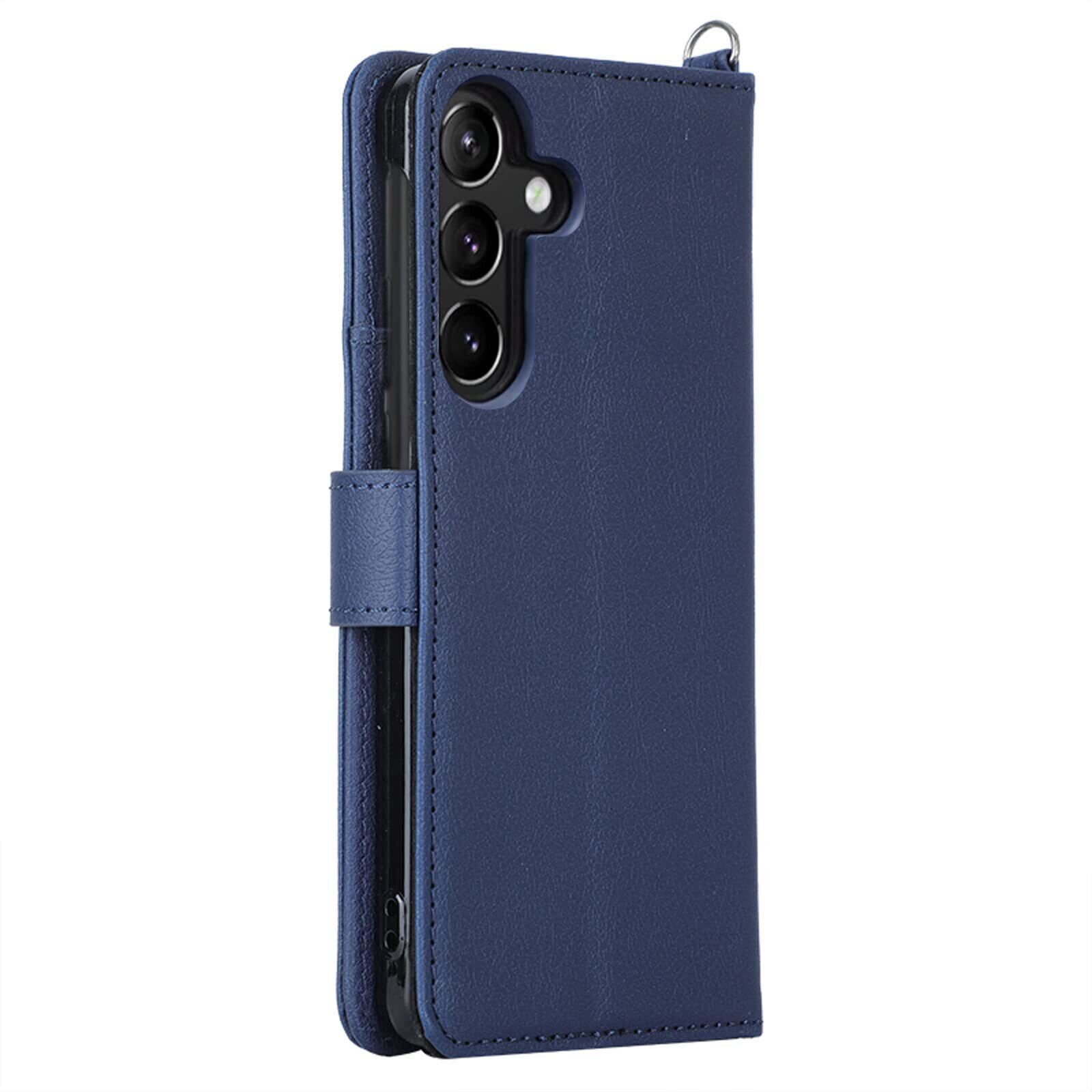 wisers Galaxy A54 5G SC-53D SCG21 対応 手帳型 スマホケース (ダークブルー) 牛革PUレザー (カードホルダー/スタンド機能付) ストラップ 2種付き (ハンドストラップ/ネックストラップ)