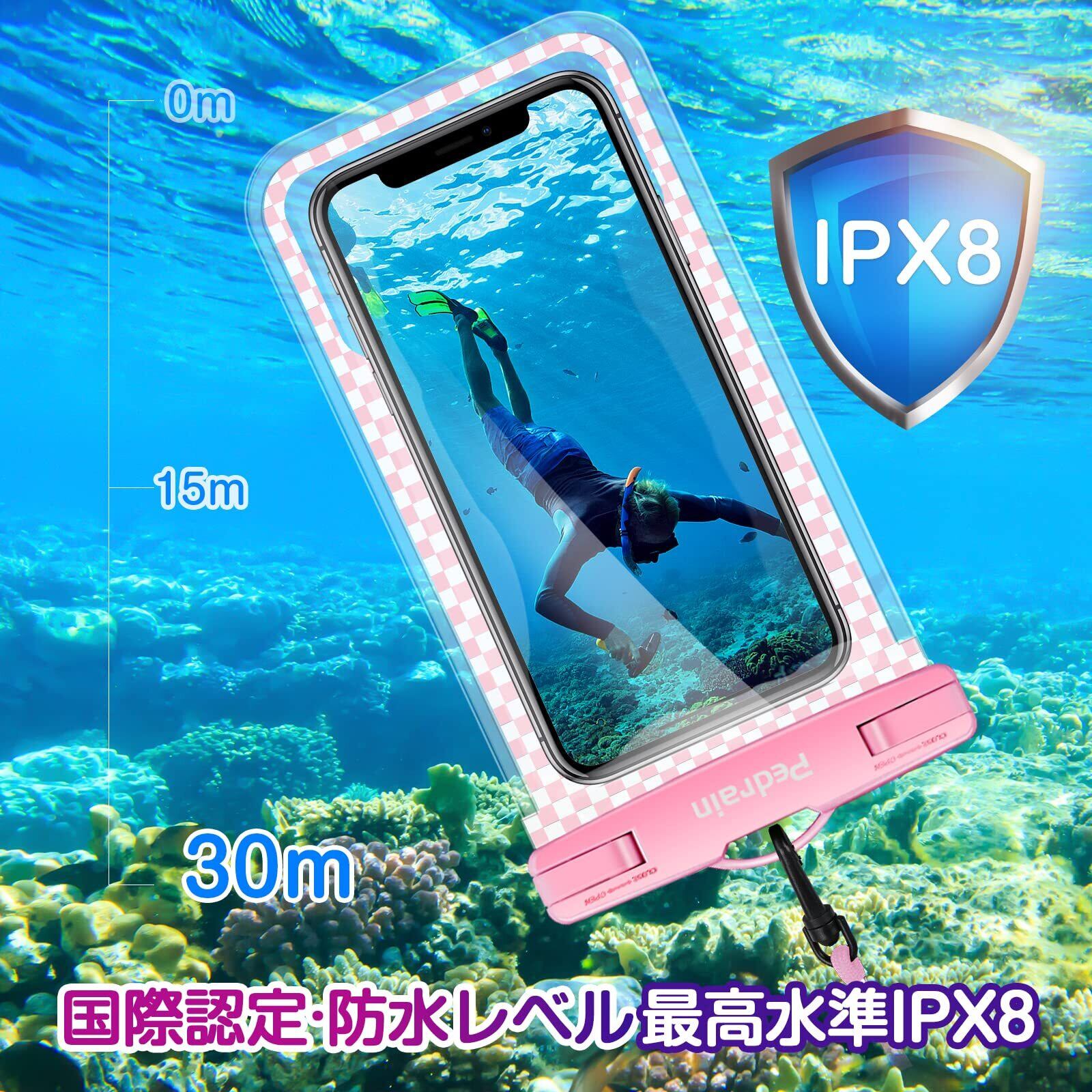 【IPX8超強防水&保護力アップ】 SGS機構認証の最高レベル防水国際保護等級IPX8を達成した防水ケースが新登場!更に新デザインの頑丈なボタン保護により、最大防水深さは30メートルで30分間の防水性能を実現し、水没しても内部への水の浸入を完全に防ぐことができます。水だけでなく、雪・砂・汚れもなどからスマホを保護します。(IPX8認証番号:SZIN1907010144PC)