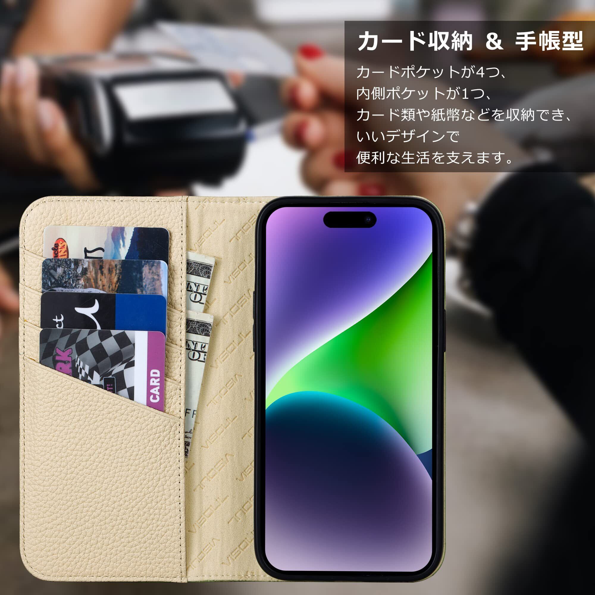 VISOUL iPhone 15 ProMax ケース 手帳型 本革 MagSafe対応 スマホケース アイホン15プロマックス レザー 全面保護 マグネット式 カード収納 横置きスタンド機能付き手帳型ケース 6.7インチ アイフォン15 ProMaxグリーン ホワイト