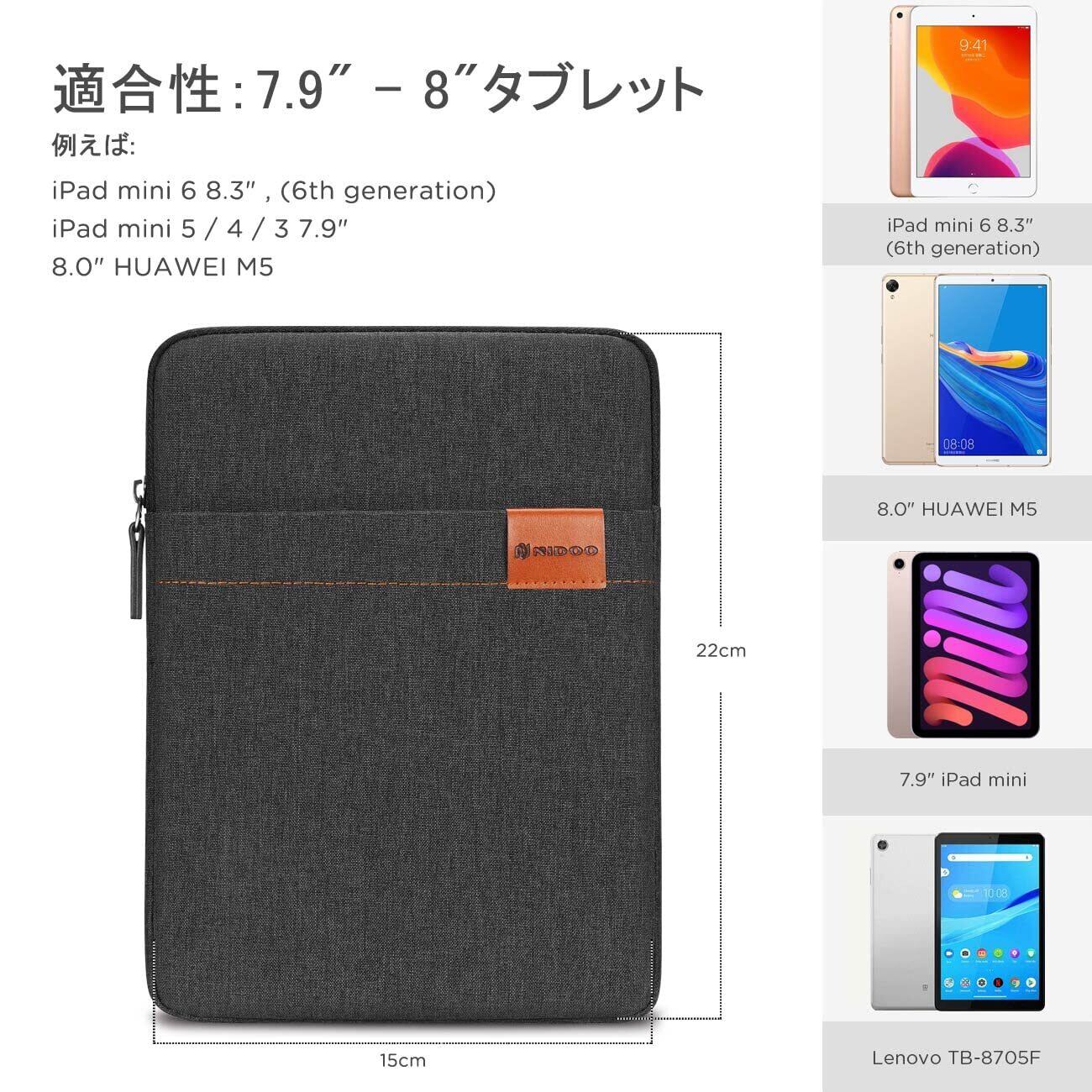NIDOO タブレットケース 8インチ ラップトップケース (8.3" iPad Mini 6 / 7.9" iPad Mini 5 / 8" Huawei MatePad T 8 / 8.7" Galaxy Tab A7 Lite / 8" Smart Tab M8) 小物ポーチ/Tablet Laptop Sleeve 8", ダークグレー
