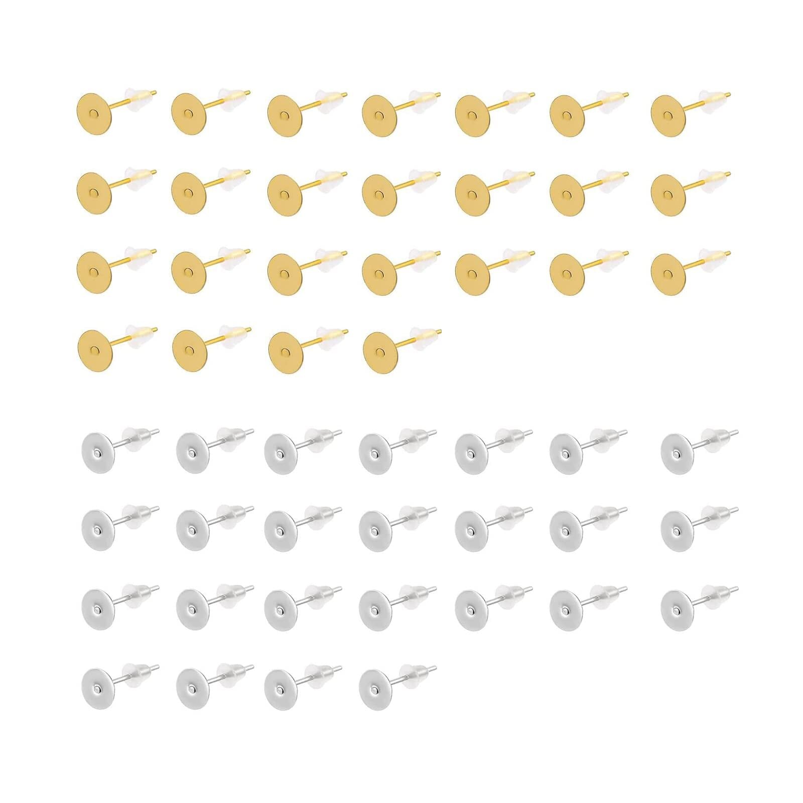 YFFSFDC サージカルステンレス 丸皿 ピアス ピアスパーツ 樹脂 キャッチ 2色 ゴールド シルバー 4mm 平皿 100個セット