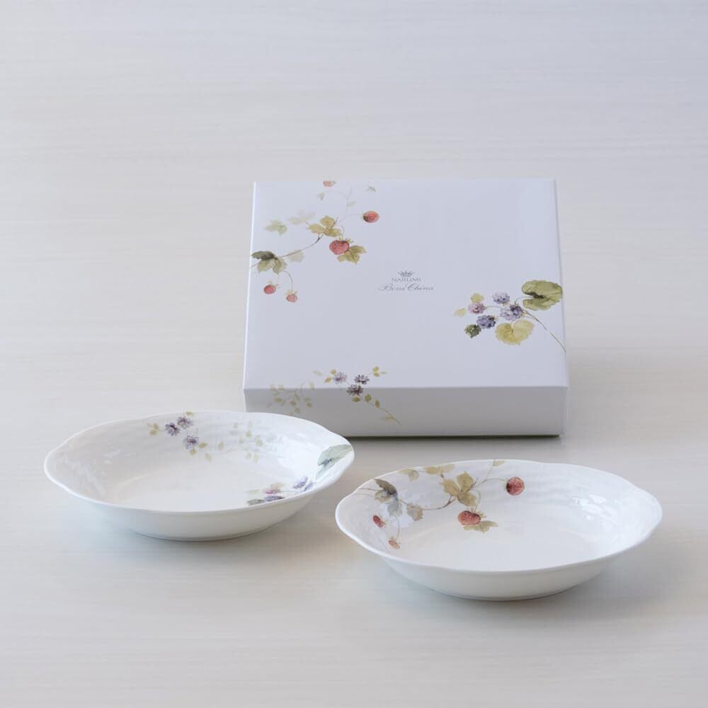 NARUMI(ナルミ) カレー皿 パスタ皿 セット ルーシーガーデン 径23cm ベリー柄 2柄セット おしゃれ かわいい レリーフ 結婚祝い オーバルプレート 電子レンジ温め 食洗機対応 ギフト箱入り 96011-23065P