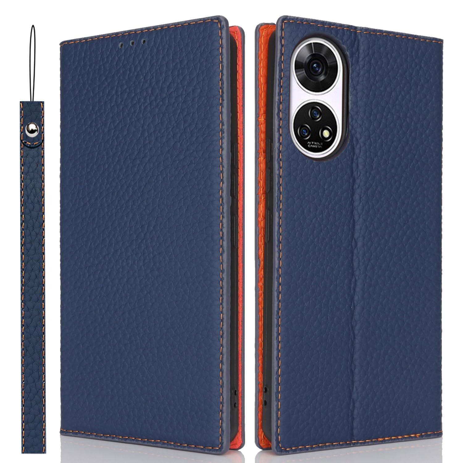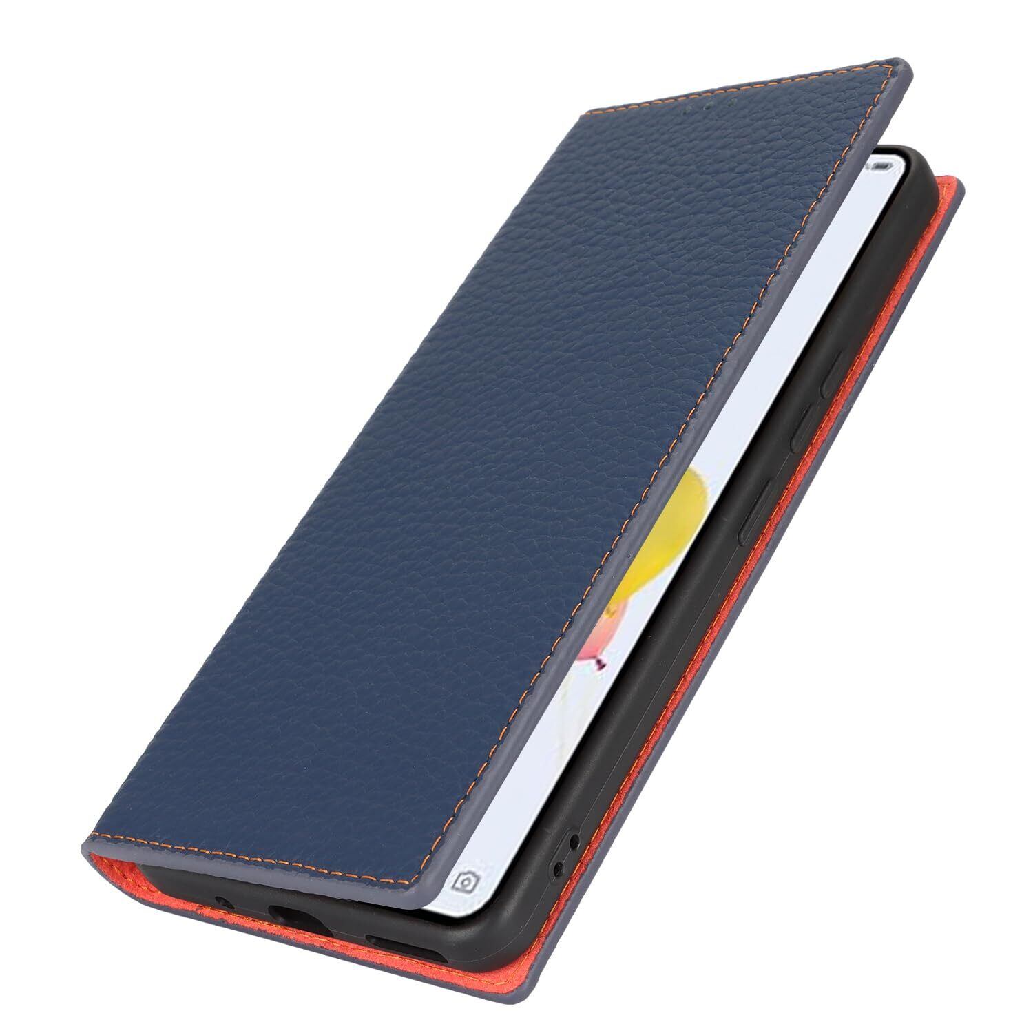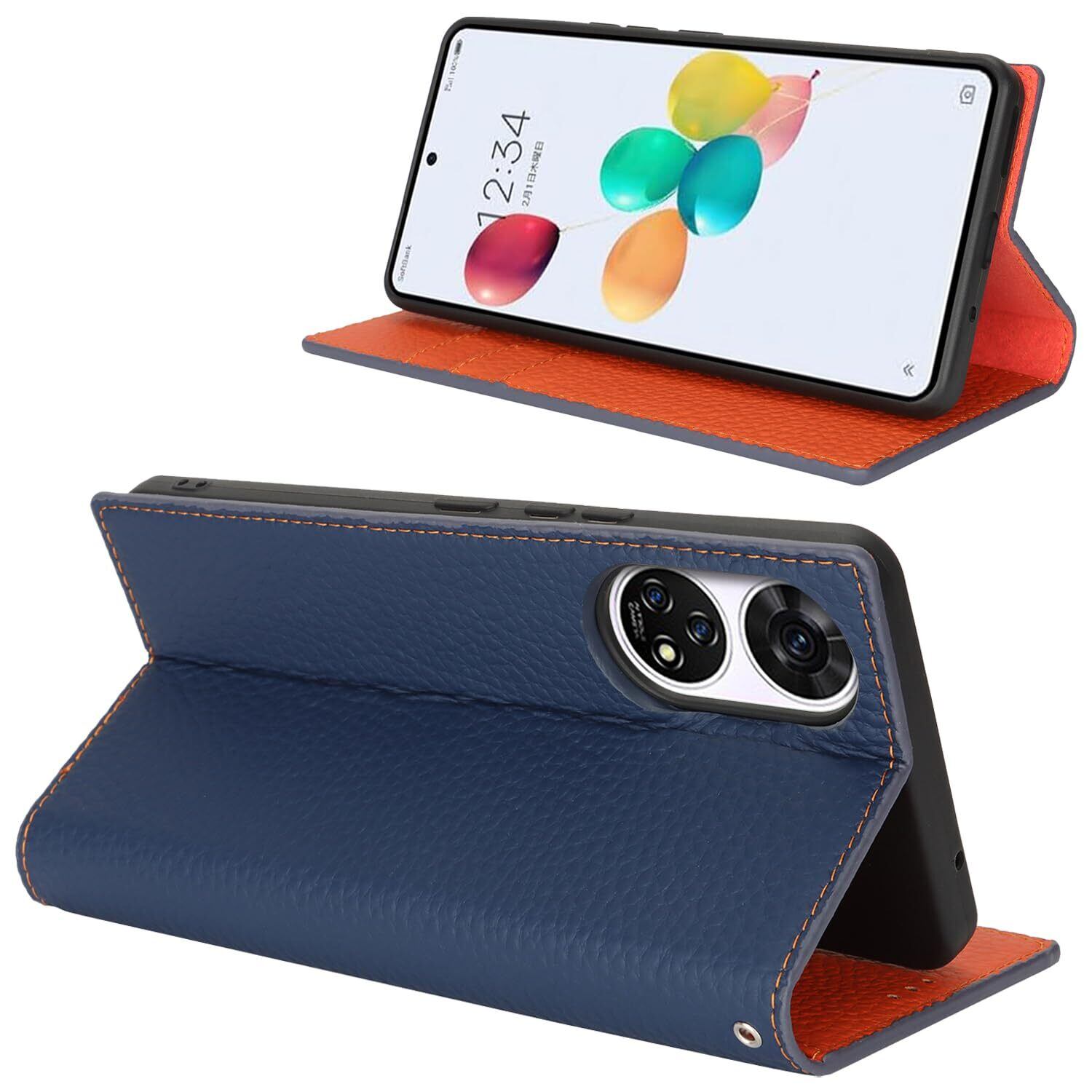Eastwave ZTE あんしんファミリースマホ A303ZT ケース 本革 牛革 anshin family a303zt ケース 手帳型 カバー 手帳 本革 柔らかい 本皮 スプラットホール付き スプラット同梱 内蔵マグネット - ネイビー