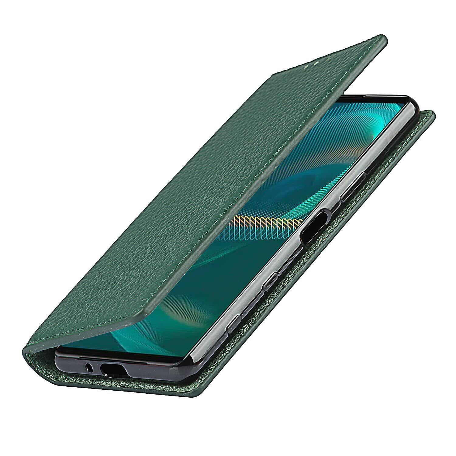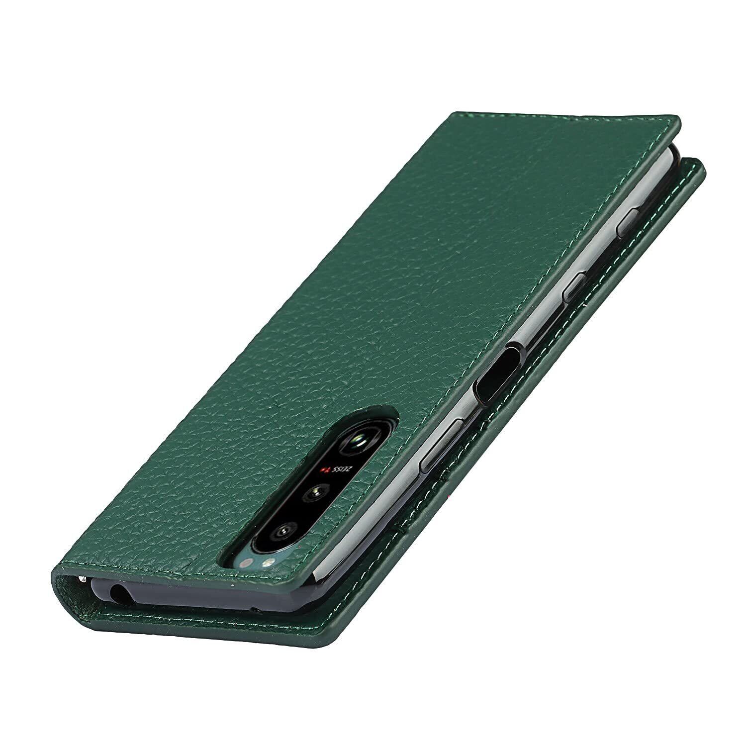 Xperia 5 III ケース手帳型 SO-53B SOG05 A103SO ケース Pelanty 牛革製品 本革レザー 財布型カバー Sony Xperia 5 III カード収納 スタンド機能 内蔵マグネット 手作り柔らかい スマホケース ソニー エクスペリア5III so53b 5 3代 携帯カバー ストラップ付 ヘッドフォンケーブル 耐衝撃 [6色選択] グリーン