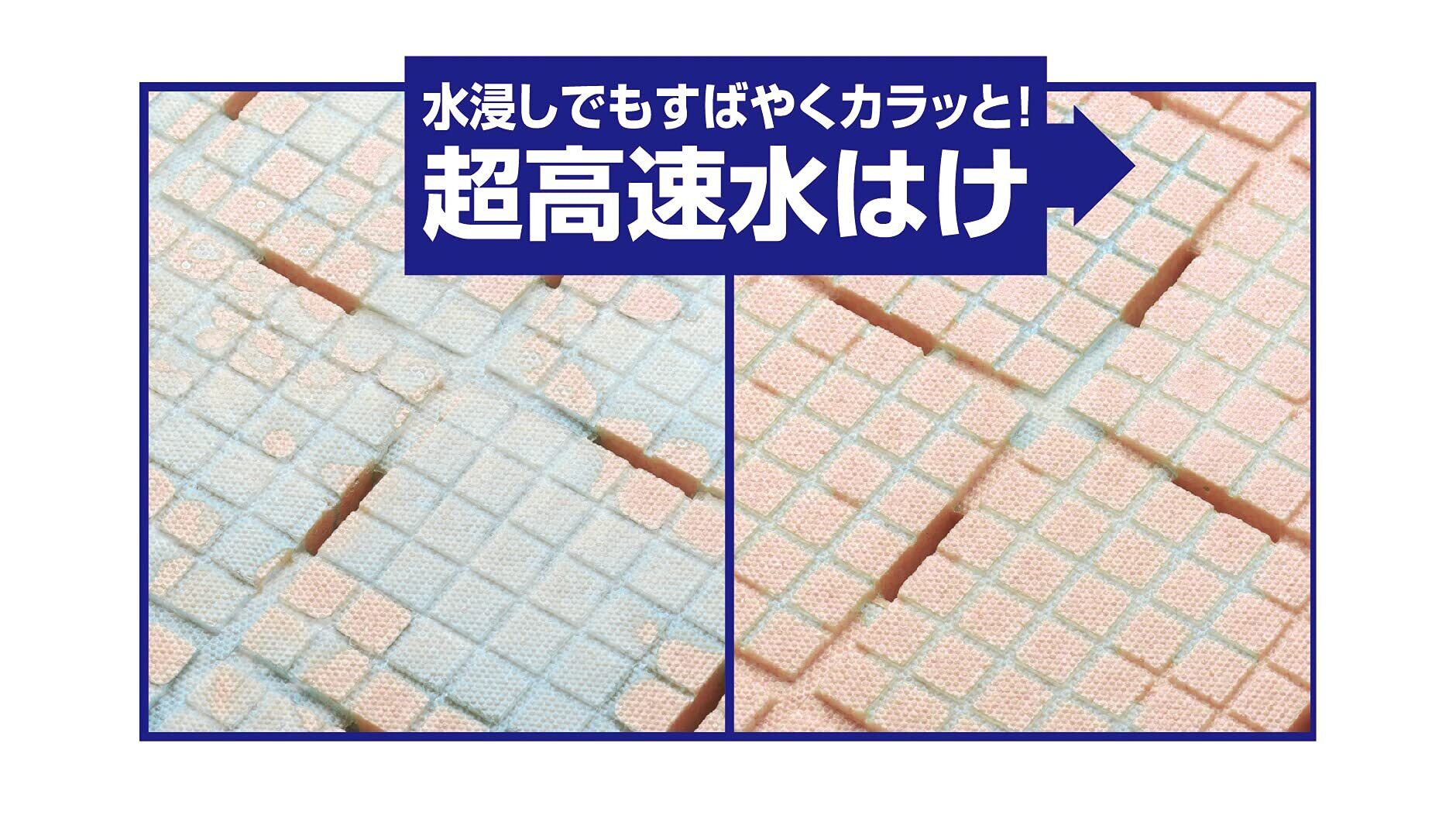 表面はモザイクタイル柄で水切れが良く、すべりにくく、表面に残った水でヒヤっとしません。