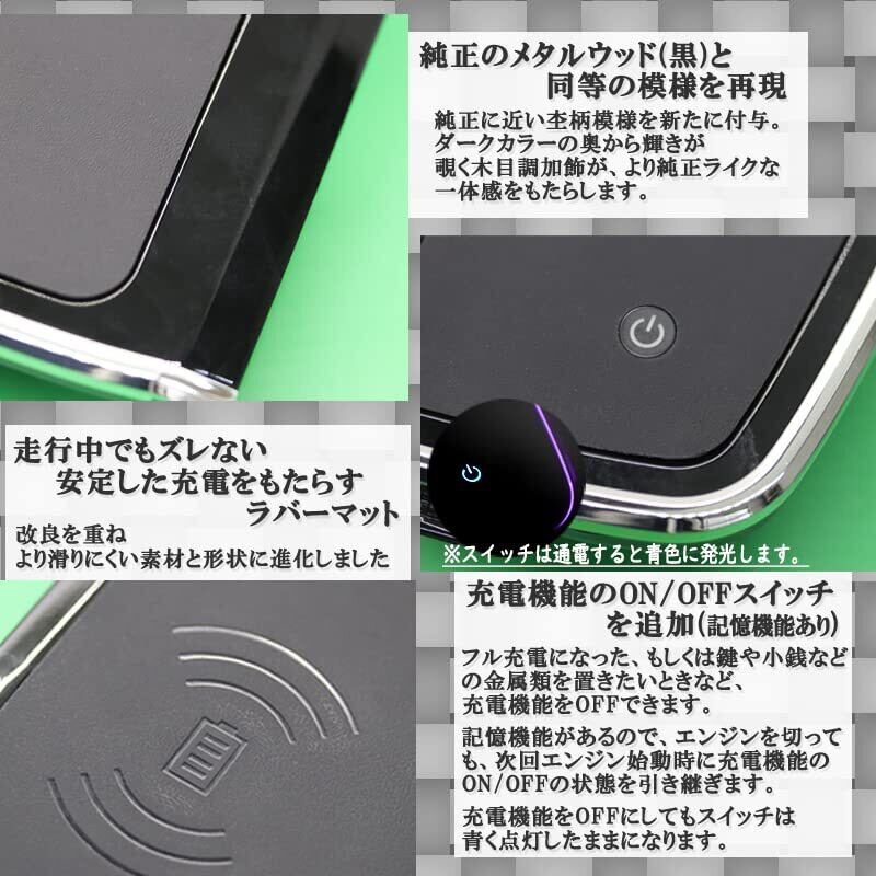 アルファード ヴェルファイア 30系 専用 QI充電 対応 センタートレイ 一体型 ワイヤレス充電器 黒 メタルウッド 最大15W充電 対応 iPhone14 (Qi充電) も 対応 R5年改良Ver. 4.0