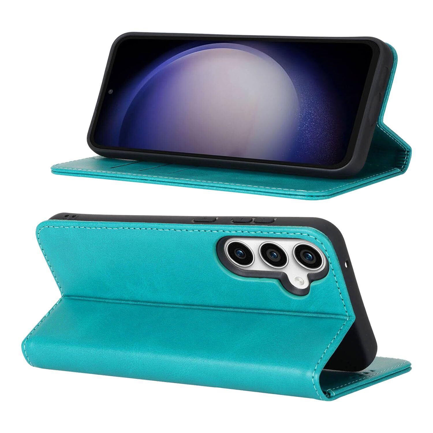 Pelanty for Galaxy S23 FE 手帳型ケース SCG24 au 携帯カバー サムスン ギャラクシー S23 FE 5G レトロ 合成皮革 + TPUケース 内蔵マグネット Samsung Galaxy S23 FE 5G 財布型カバー ICカード 収納ポケット 横置きスタンド機能 スマホケース 指紋防止 軽量薄型 耐衝撃 耐摩擦 スカイブルー