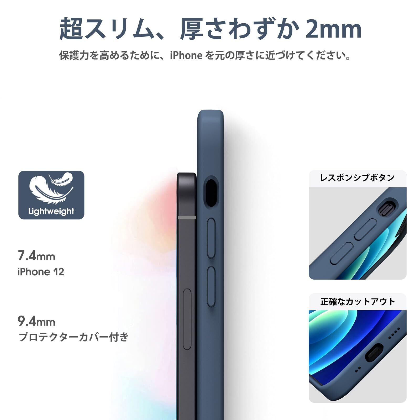 Supdeal iPhone 12 ケース 対応液体シリコン [耐衝撃] [柔軟TPU液体シリコン] [ソフトタッチ] [レンズの全面保護] [指紋防止] [落下防止] [滑り防止] 軽量 4層保護 アイフォン 12 スマホカバー 6.1インチ(ダークブルー)
