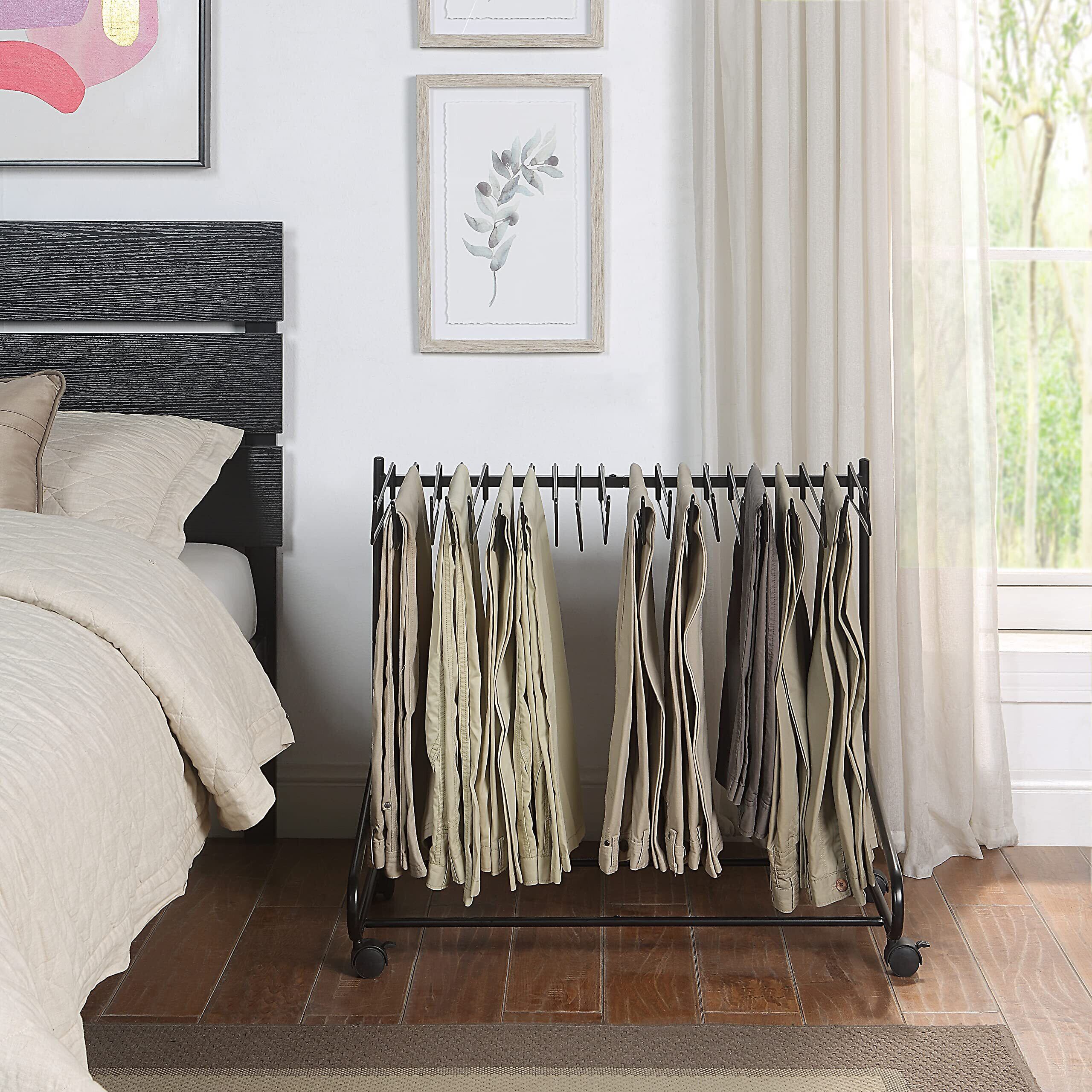 サニーポイント スラックスハンガー ラック ズボンハンガー キャスター付き 衣類収納 押し入れ (20本, 黒)