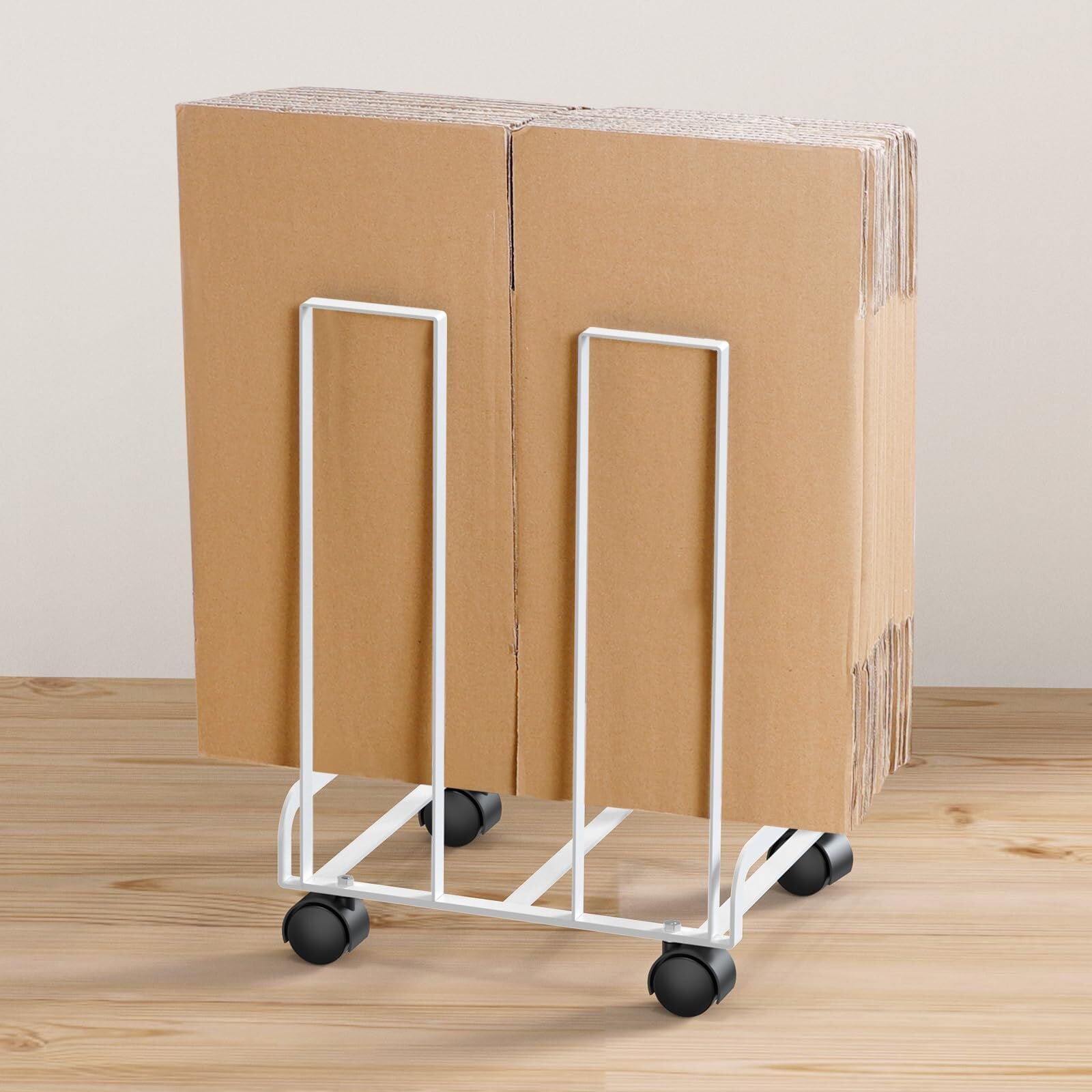 FUNHOO 【段ボールを定位置まとめる】 ダンボールストッカー ホワイト | ダンボールラック ダンボール収納 キャスター付き コンパクト シンプル おしゃれ ダンボール 収納 段ボール ストッカー スタンド 隙間収納 ラック 整理整頓 便利グッズ キッチン 玄関