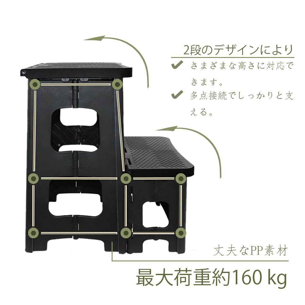 GOODCHI 踏み台 脚立 折りたたみ式 ステップ台 2段 ポリカーボネート製 耐荷重150kg 高さ43cm 軽量 滑り止 折りたたみチェア 玄関台 洗車 踏み台 (ブラック)