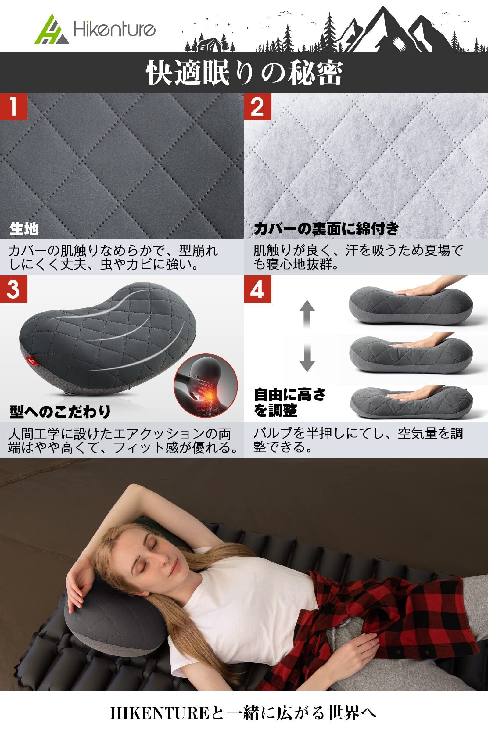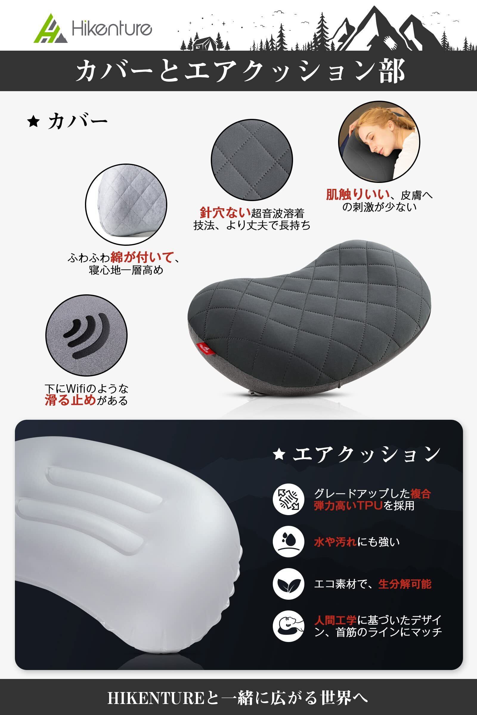 Hikentureキャンプ 枕 【超軽量・空気逆流防止弁】 コンパクト キャンプ まくら カバー付き エアーピロー アウトドア 枕 防滑処理 キャンプ用枕 エアピロー 空気枕 エアー枕 携帯枕 コットン 収納袋付き 車中泊 ツーリング