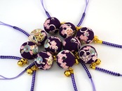 美しい和柄の布で包んだ小さな万華鏡の根付け(チャーム)。万華鏡(球体)の穴をのぞけばカラフルなガラス玉が光に反射して癒されます!! ※球体を動かしたり、コツコツ叩くとガラス玉が動いてより綺麗です。