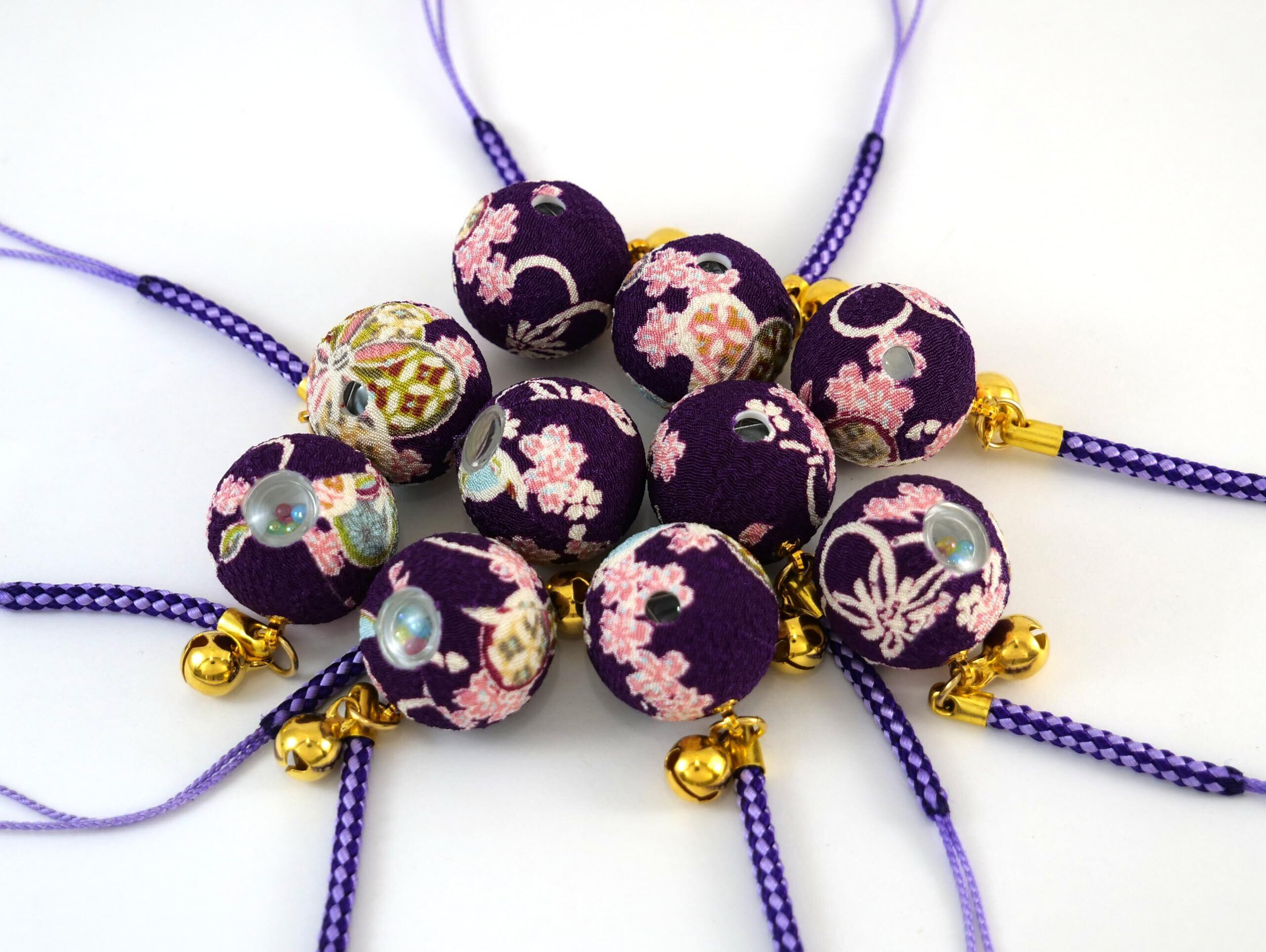 美しい和柄の布で包んだ小さな万華鏡のチャーム。万華鏡(球体)の穴をのぞけばカラフルなガラス玉が光に反射して癒されます!!※球体を動かしたり、コツコツ叩くとガラス玉が動いてより綺麗です。万華鏡は球体(直径25㎜)で、鈴付きなのでお家の鍵やお財布にもピッタリ! 球体をしぼが特徴のちりめん(縮緬)生地で包みました。和柄が醸しだすエレガント&キュートな装いと、ちりめん生地独特の風合いが楽しめます。 世界中で愛される和柄のちりめん生地を使用した小さな万華鏡は日本で作られたもので、海外の人へのお土産・プレゼントにも最適。 職人による手作りのため品質には多少の違いがあります。また、図柄のパターンは商品ごとに異なりますので、ご了承願います。