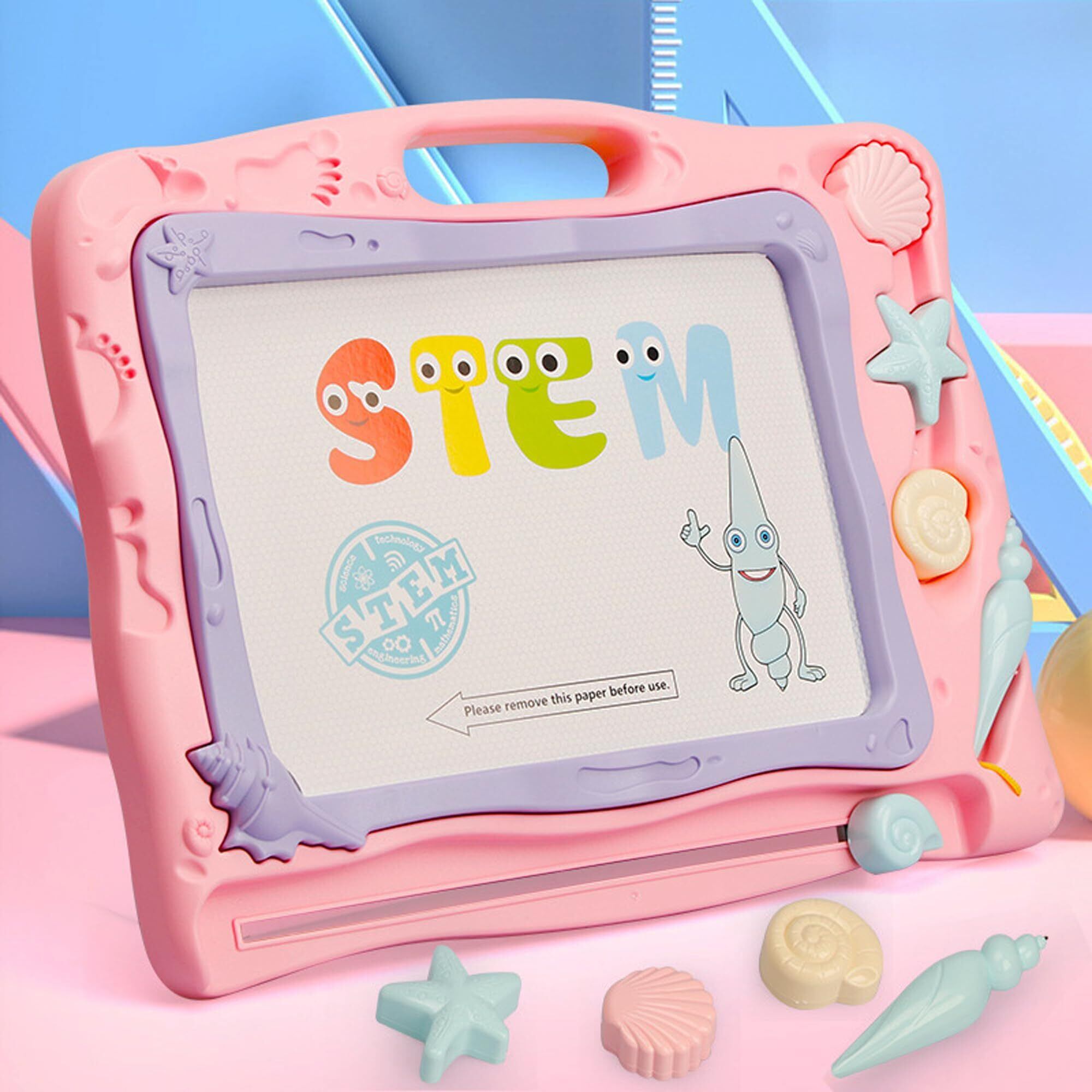 お絵描きボード カラフル おえかきボード Qiqutop おえかき 大きい 40.3*31.2cm 子供 お絵かきボード落書きボード 知育 四色 3 4 5歳 男の子 女の子 誕生日 プレゼント 幼児 おもちゃ マグネットスタンプ付 (ピンク)