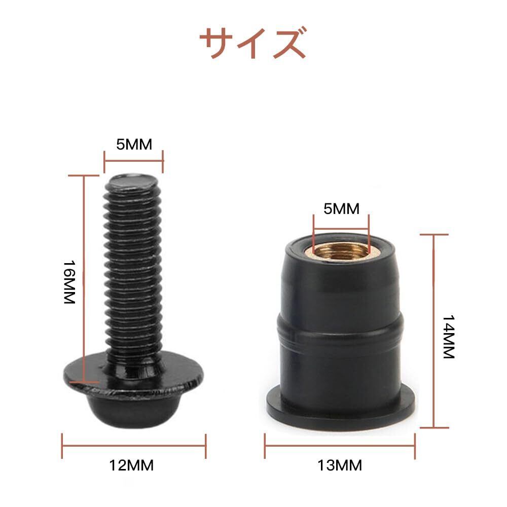 LOYELEY スクリーンボルト 10個セット M5 5mm ボルト ウェルナット 風防ネジ ウインドスクリーン カウルやスクリーンの固定 ワッシャー・六角レンチ付き カヤック オートバイ バイク用 (ブラック)