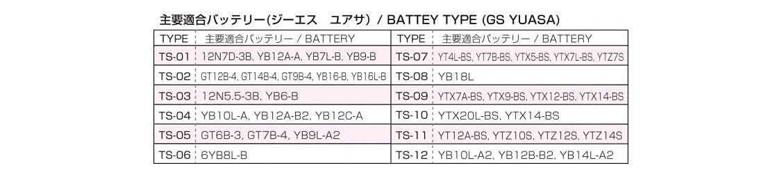 詳しくはバッテリー適合表参照