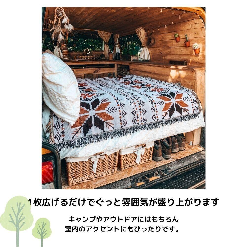 【室内でも大活躍】アウトドア用だけでなく、室内での普段使いにもおすすめです。ソファの上やフロアーマットとしてもお使いただけます。1枚広げるだけでぐっと雰囲気を盛り上げ、寛ぎの空間を彩ります。
