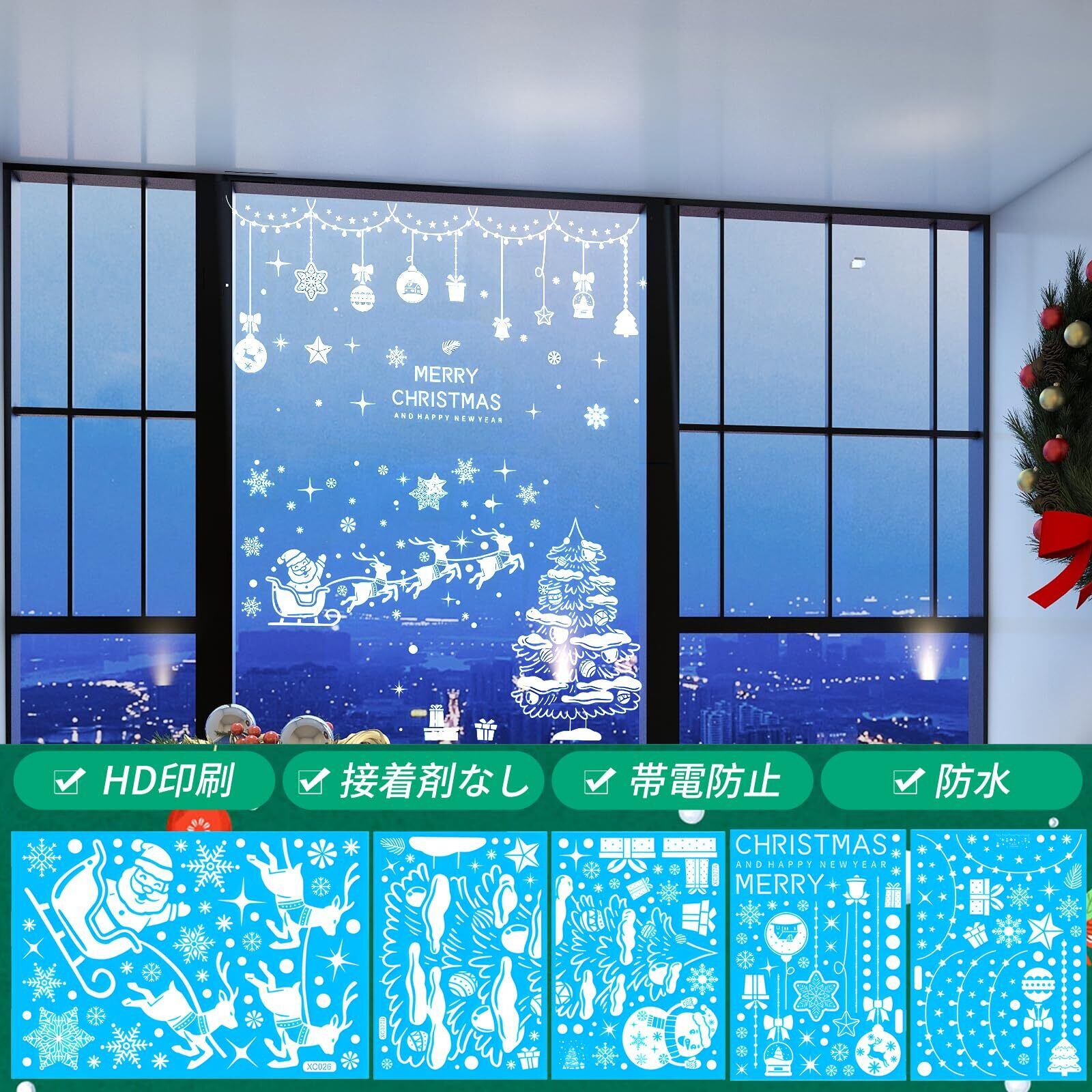 【クリスマス定番】クリスマスを素敵な装飾で演出しましょう。貼るだけでお部屋が大変身!雰囲気を盛り上げられてクリスマス飾りとしてお勧めます。