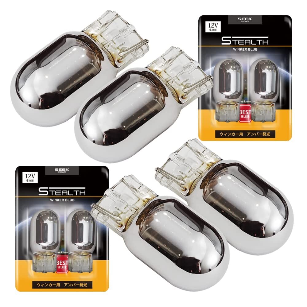 SEEK products T20 / T20 ステルスウインカーバルブ クロームバルブ ステルスバルブ ウインカー ハロゲン球 (T20 ピンチ部違い(4個)前後セット)