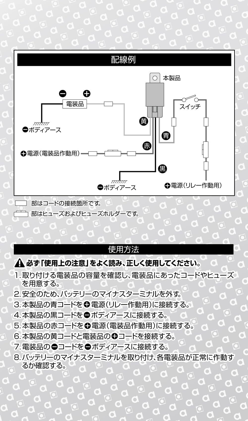 使用可能電流:DC12V車専用/20A以下
