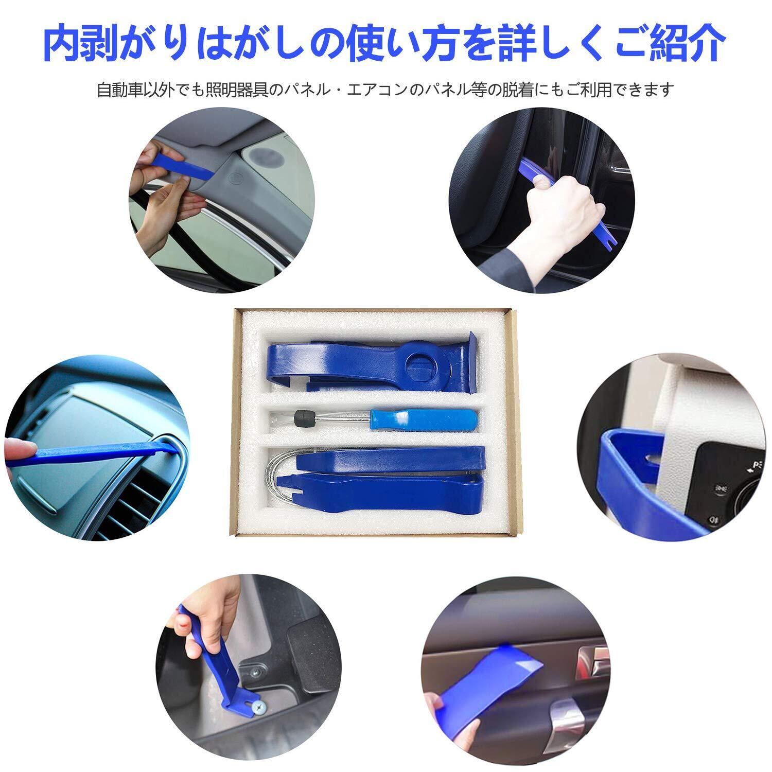 【内張りはがし セットの内容・品質】パネルはがし*2 、内張りはがし*2 、Vの字型のクリップクランプツール*1、配線ガイド*1、購入された車 内張り はがし 工具の品質期間は二年間です。万が一問題がございましたら、弊店のカスタマーサービスまでお問い合わせ下さい。