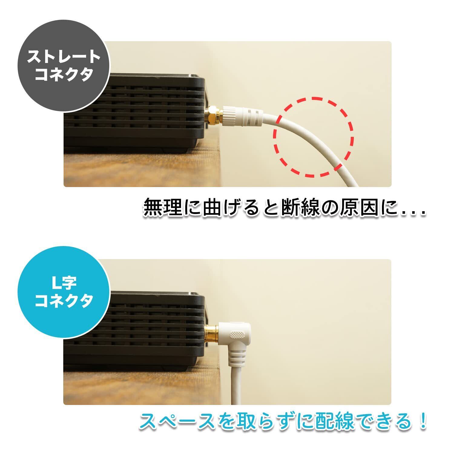 ●コネクタ規格:F型 ●コネクタ形状:L字差込式(金メッキ仕様) ●コネクタサイズ:W約14.8 x H約14.4 x D約30.2 mm ●インピーダンス:75Ω