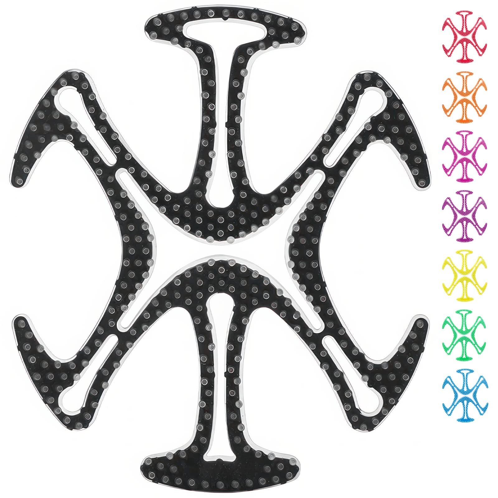 【通気性・脱臭】ヘルメットと頭皮の間に物理的な空間を作り出し、ヘルメット内部に空気の流れを生みだします。ヘルメットパッドは通気性に優れ、発汗によるバクテリアの繁殖を効果的に減らし、ヘルメットの裏地の汚染を防ぎ、抗菌、乾燥、透気、脱臭、異臭なし、季節問わず(春、夏、秋、冬)快適にご使用いただけます。素材:シリコン/ABS 本体サイズ:21.5×18.5×0.8cm 重さ45g/個 本体の厚さ8mm 歯先の長さ5mm