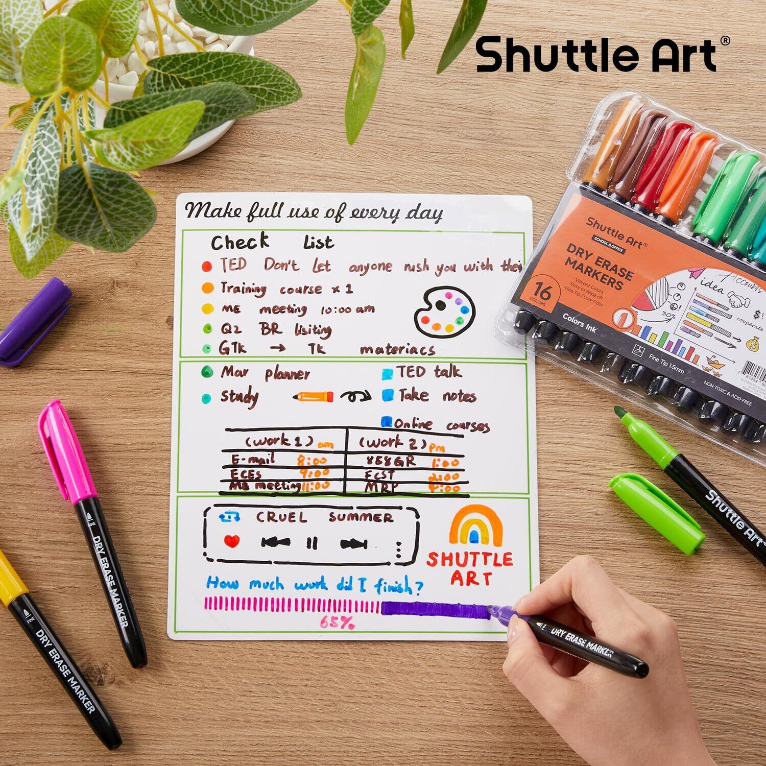 Shuttle Art ホワイトボードマーカー 消せるマーカーペン 16色セット 細字 1.5mm ホワイトボード用 ガラス/プラスチック/LED看板に書ける オフィス 作業現場 家庭 学校用