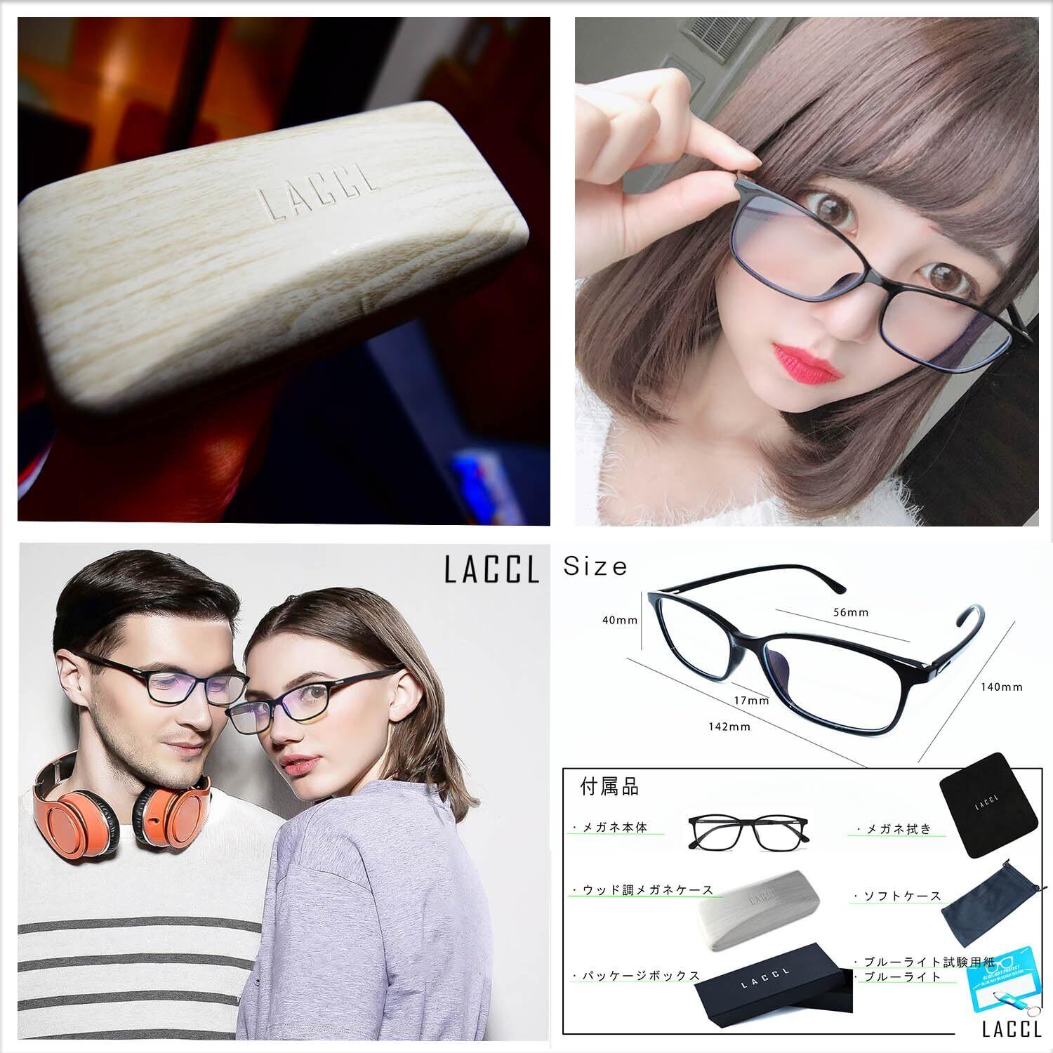 LACCL ラクル ブルーライトカット メガネ 超軽量 14グラム 伊達眼鏡 メンズ レディース クリアレンズ 度なし 001