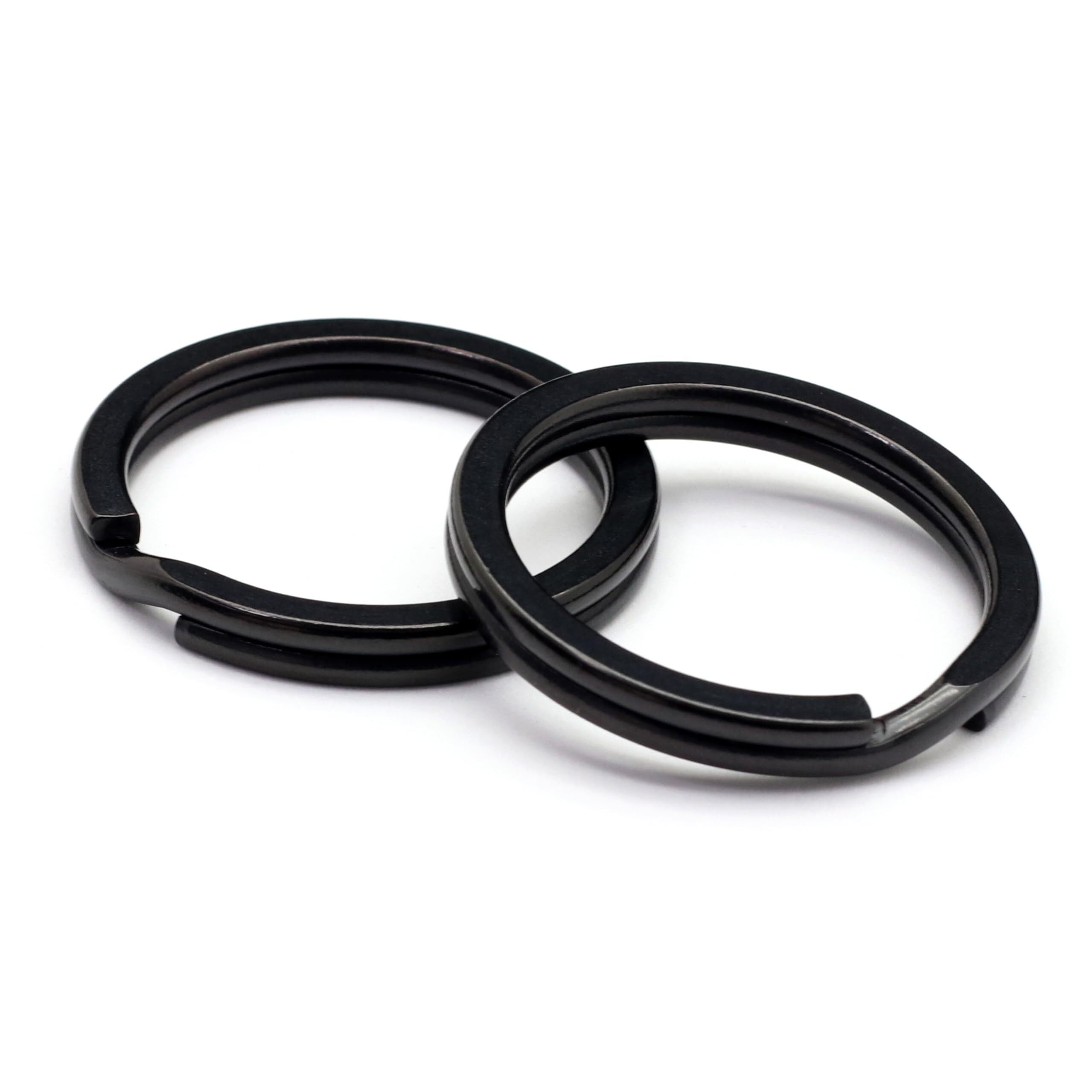 「重厚感と高級感のあるブラック」「表面を平らにした平打ちリング」黒色のチタンキーリングやカラビナ、キーホルダーに最適な二重リングです。