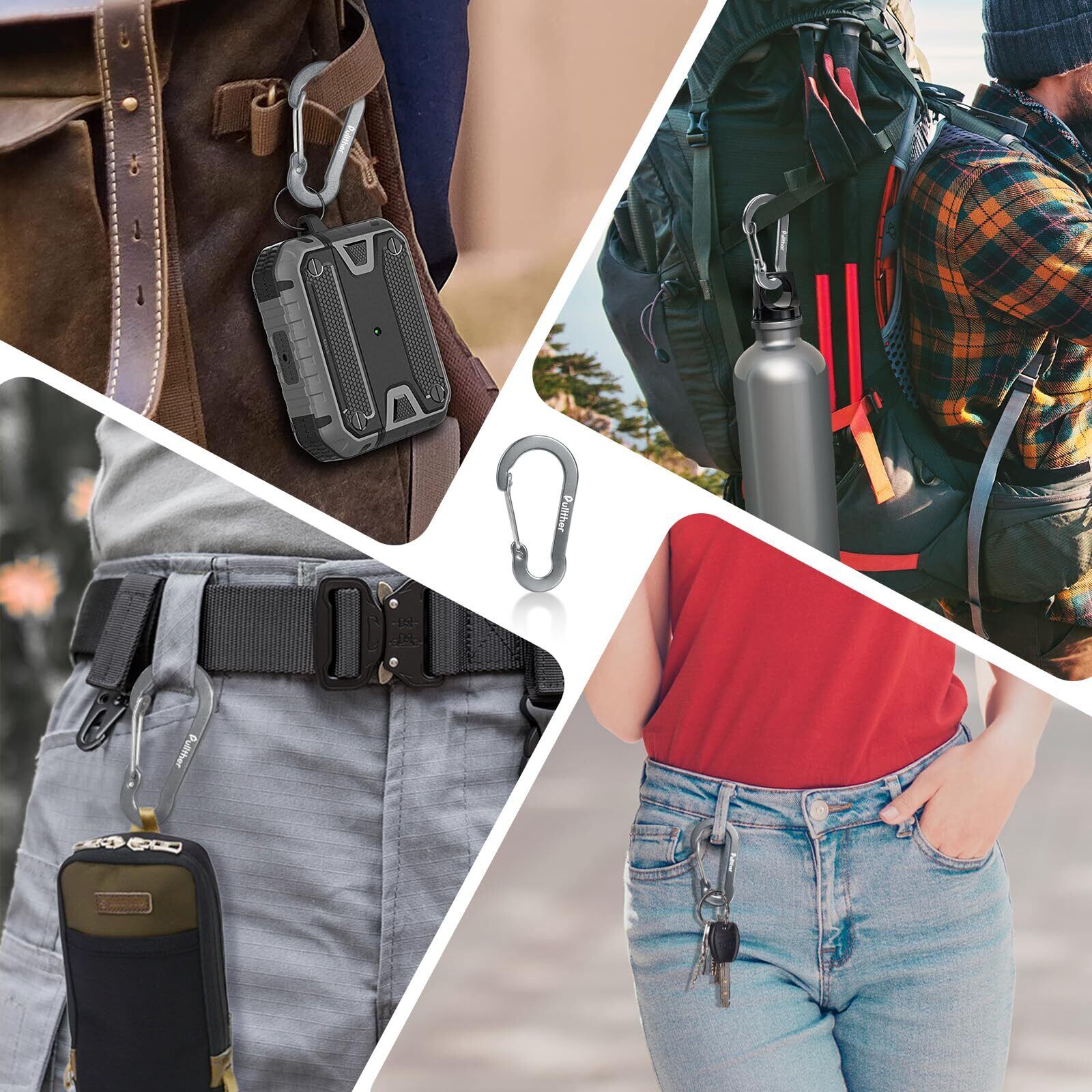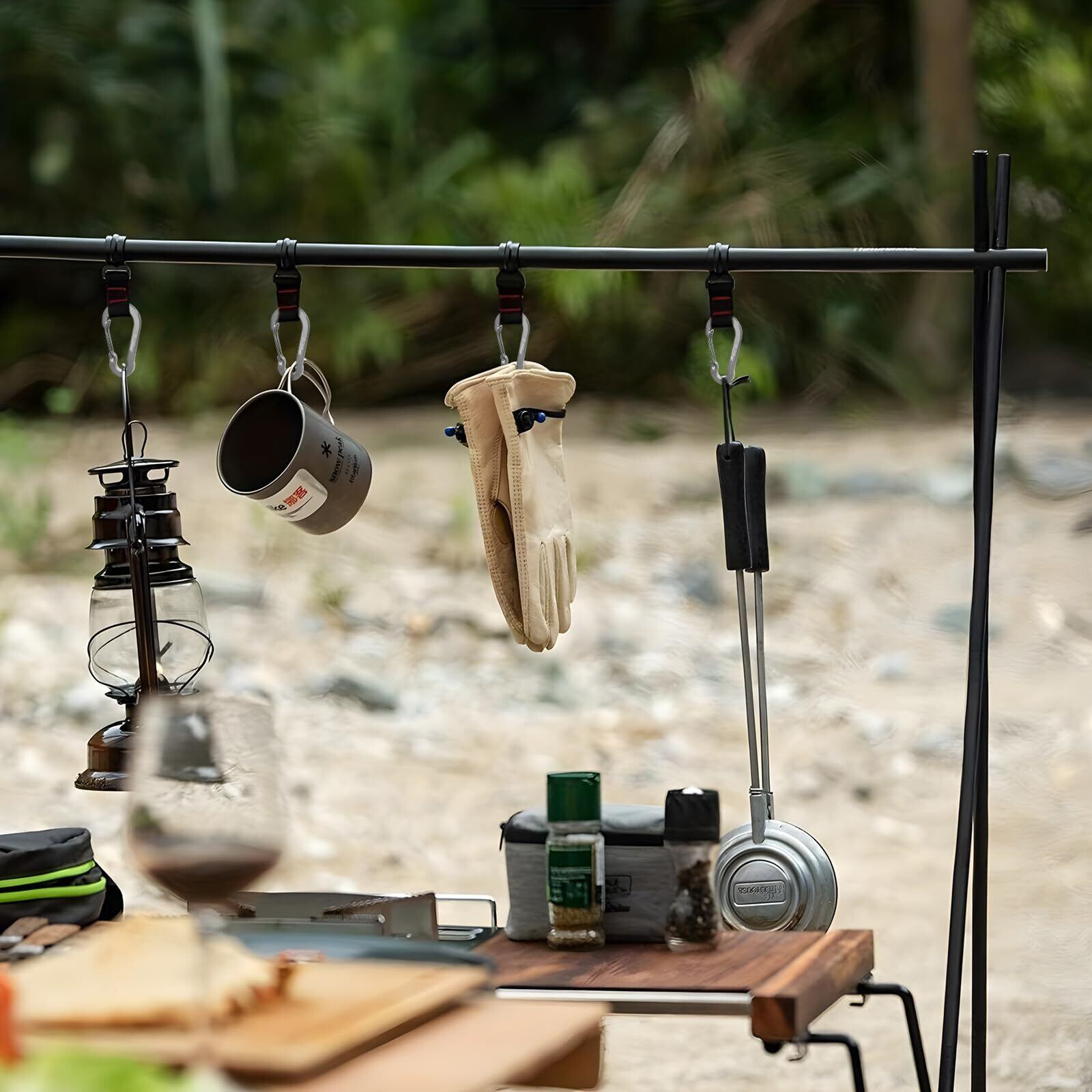 カラビナはリュックにBluetoothのスピーカー、テントの張り綱、鍵、キーホルダー、釣りの小物などをぶら下げるのに重宝しています。キャンプ、釣りで大活躍してます。