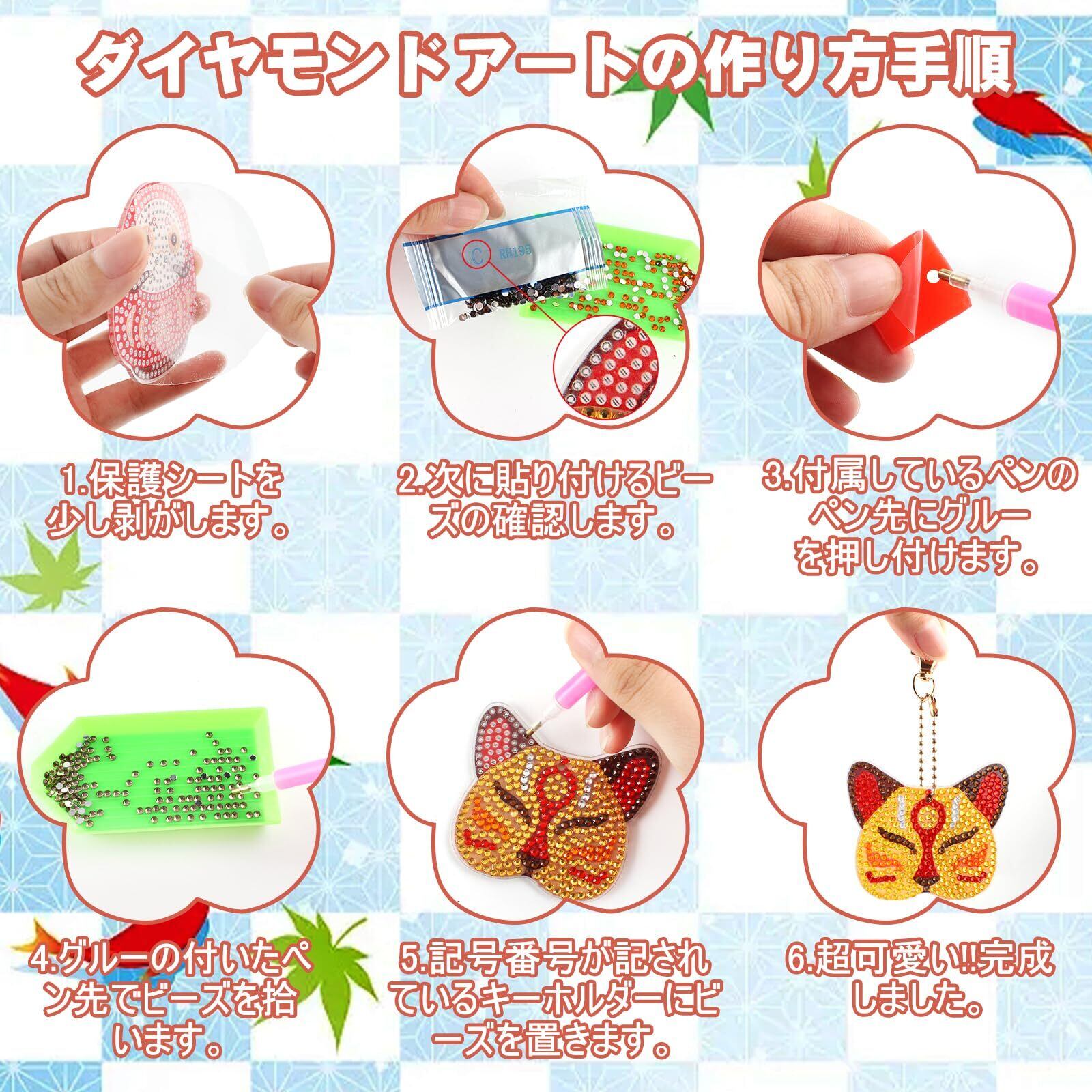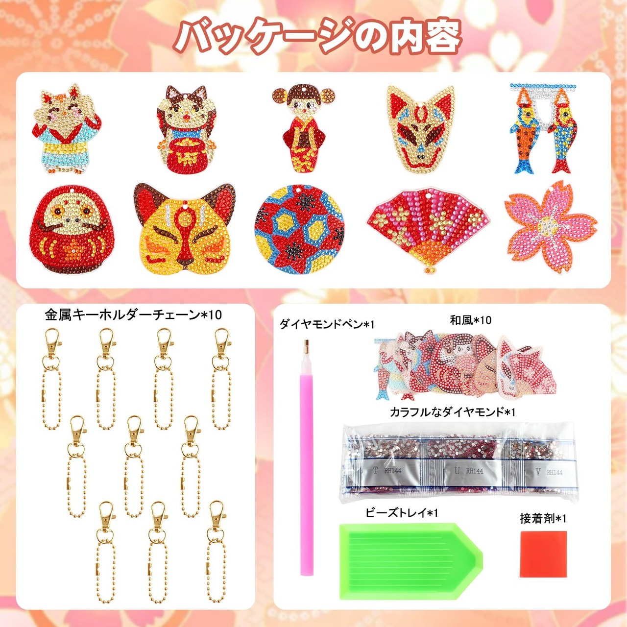 LUCKYBEE ダイヤモンドアート キーホルダー キット DIY ダイヤモンドビーズ キーホルダー 5Dダイヤモンド塗装キット 和風ダイヤモンド キーホルダー キット手芸キット 初心者 大人 子供用 アートクラフト用品 和風10個入 チェーン付き