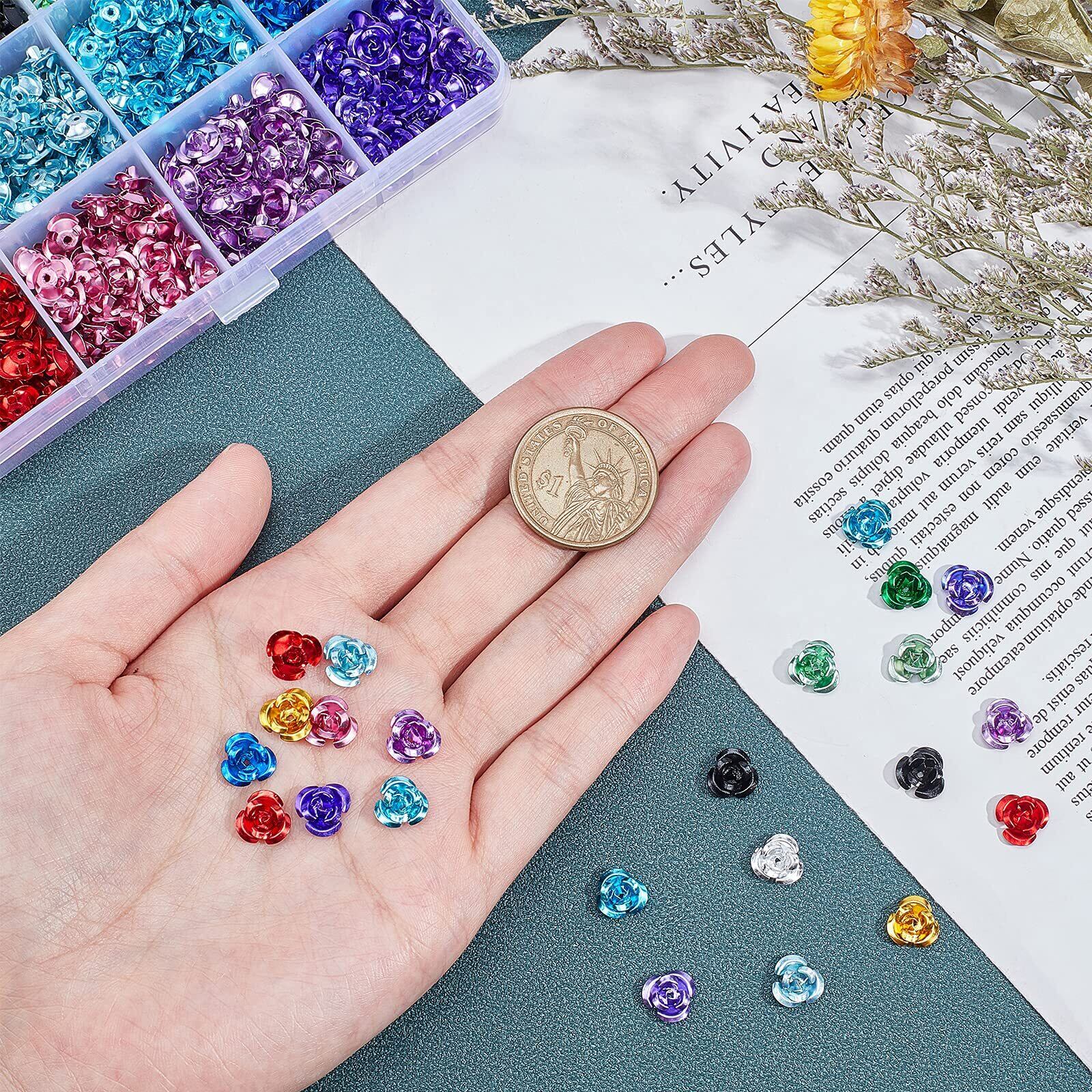PH PandaHall 花ビーズ スペーサービーズ アルミローズ 720個セット 12色 花座 メタルビーズ アルミ薔薇 アルミローズ 金属ビーズ アルミビーズ カラフル ビーズ 手芸 アクセサリーパーツ ピアス ブレスレット ネックレス DIY用 手作り用品 ハンドメイド素材 収納ケース付き