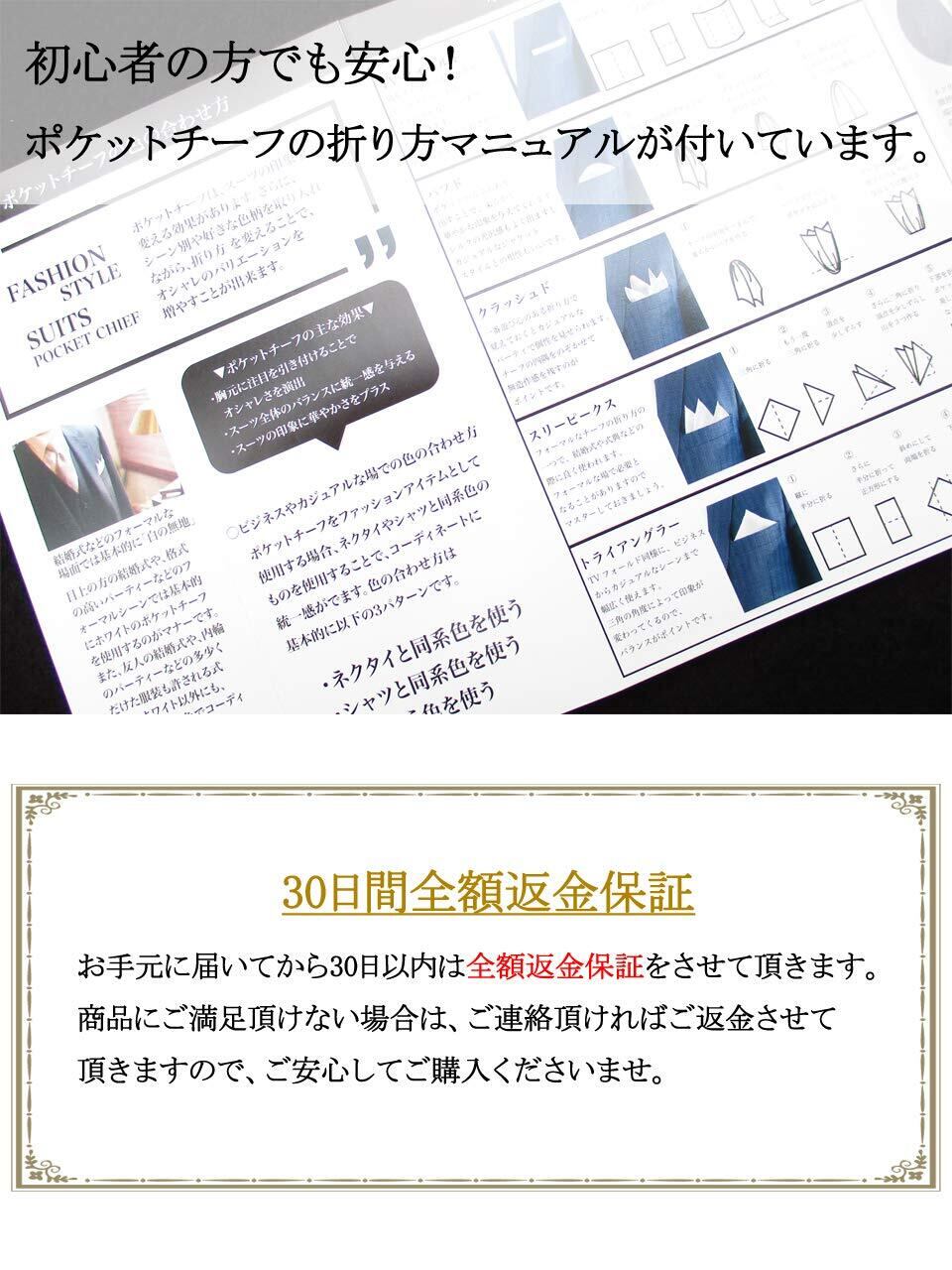 [Freate] ポケットチーフ シルク100% 大判35×35cm 折り方ガイド付き