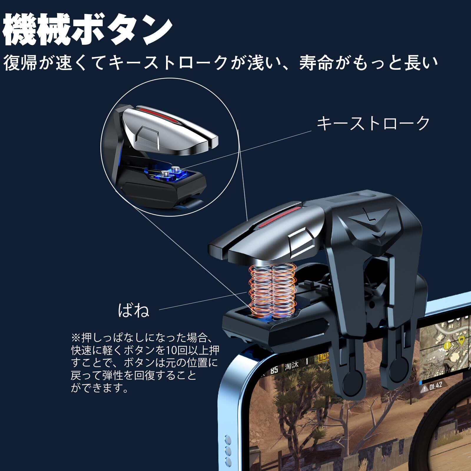 【4つボタン】 スマホゲーム コントローラー 一回押しダブルコントロール モバイルゲーミング用 合金製黒軸メカニカル 射撃ボタン 「CODM対応不可」 高速精確な射撃 iPhone/Android シューティングゲーム対応