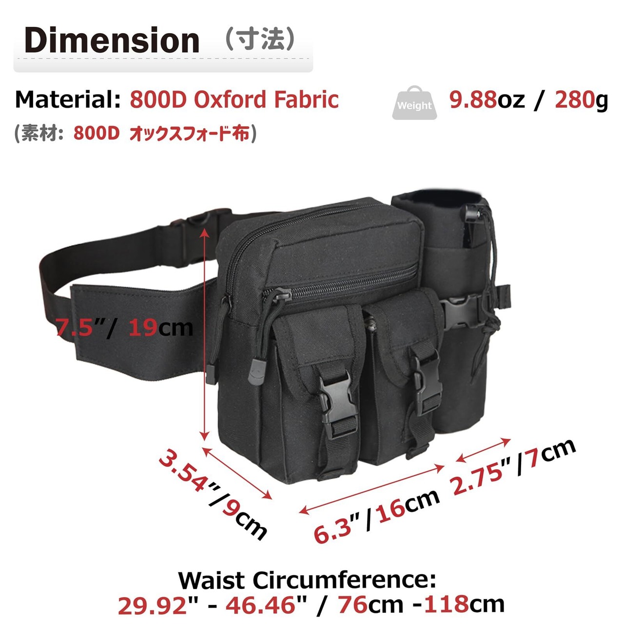 Azarxis 多機能ウエストパッグ ショルダーバッグ ミリタリー 2Wayバッグ 水筒ポーチ付き ウェストポーチ Molleポーチ 小物収納 水筒ウェストバッグ サバゲ― タクティカル アウトドア