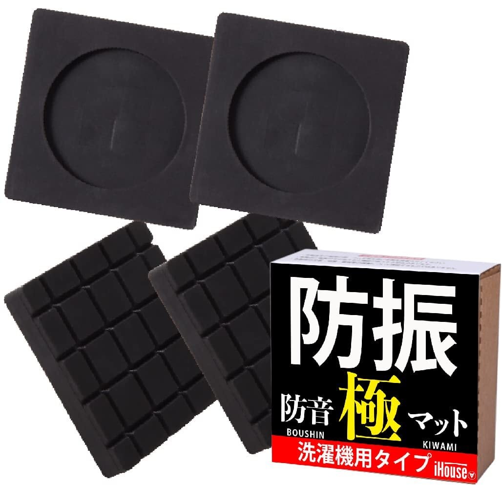 洗濯機用防振ゴム 防振 ゴム 極 4枚入り 防災士監修 洗濯機 かさ上げ 振動吸収マット 振動軽減 高さ調整 底上げ 防振防音 揺れ防止 滑り止め 洗濯機 かさあげ 2021年進化版 (防振マット)