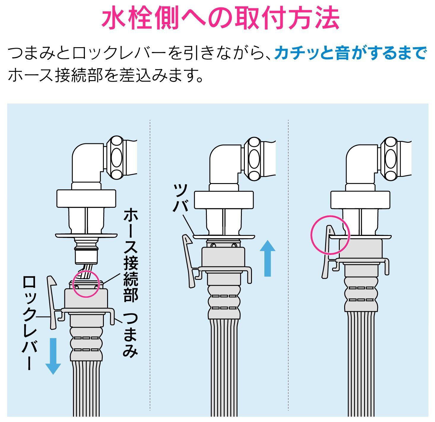 洗濯機用ニップルなどにワンタッチで接続ができます。