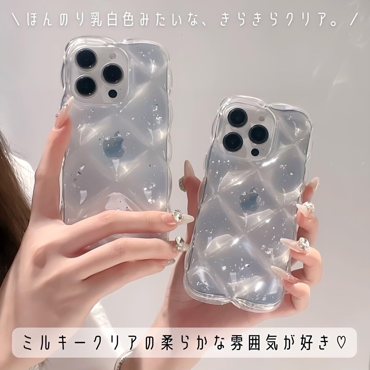 saymi's キルティング クリア おしゃれ 韓国 iPhone12/12pro ケース きらきら ぷっくり 衝撃吸収 クッションデザイン 立体 シルバー 持ちやすい 透明 可愛い 推し活 (iPhone12/12pro)