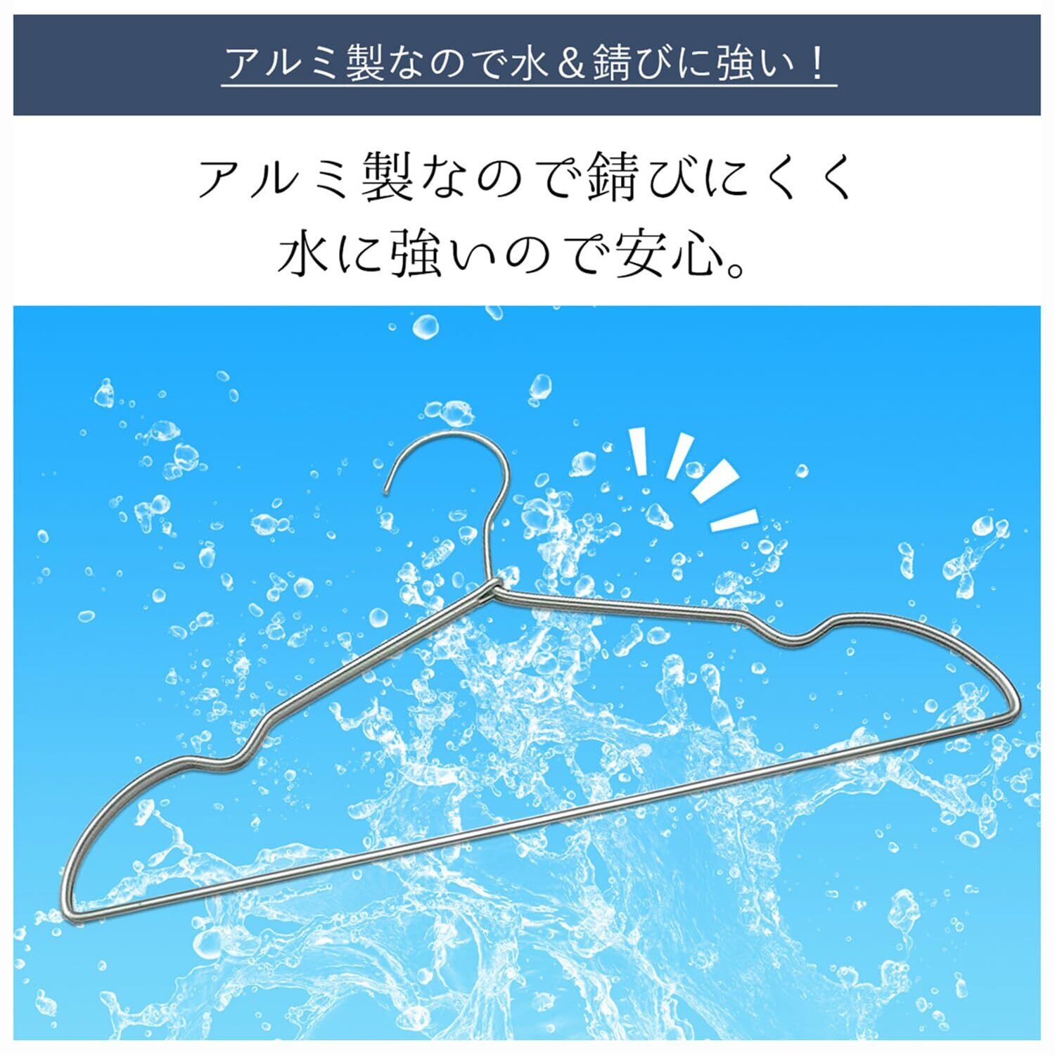 【超軽量アルミハンガー】1本あたり37gの超軽量アルミハンガーが登場。 一般的なプラスチック製のハンガーでも50gなので37gは本当に軽量!ステンレス製並みに丈夫で錆びにくいので軽さを重視する方にもおすすめです。