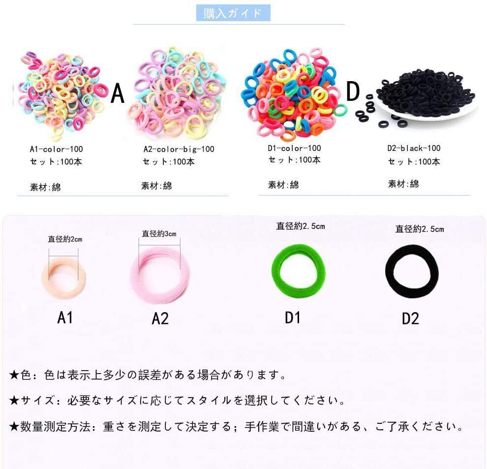 shefun ヘアゴム こども 子供 髪ゴム ベビーヘアゴム 小さい キッズ ヘアアクセサリー 女の子 髪飾り 黒 カラフル 100本セット まとめJP136 (A1-color-100)