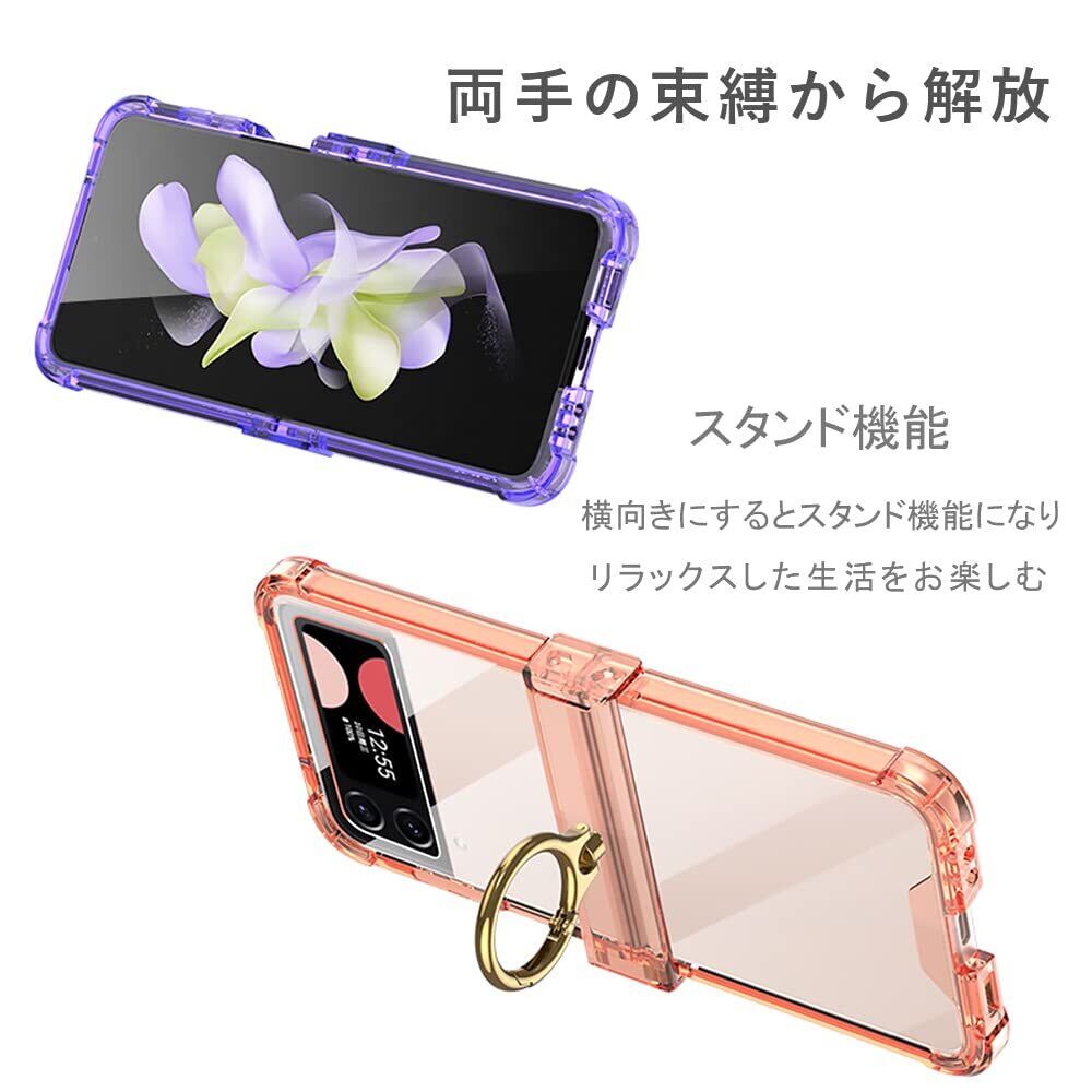 Galaxy Z Flip4 ケース クリア Samsung ギャラクシーZ フリップ 4 / docomo SC-54C / au SCG17 用 カバー リング付き ヒンジ保護 Uovon スマホケース 耐衝撃 スタンド機能 超軽量 超薄型 黄変防止 おしゃれ・クリア