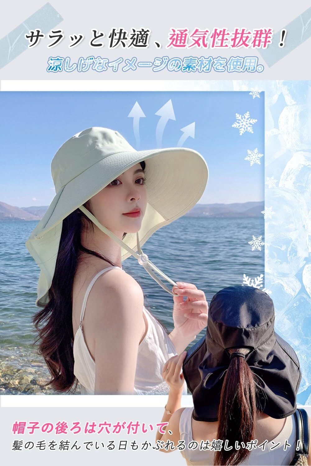 [Pneito] UVカット 帽子 遮光 日焼け防止 つば広 日除け帽子 軽量 接触冷感 通気性 あご紐付 小顔効果 全方位UVカット コンパクト 紫外線対策 自転車 アウトドア