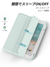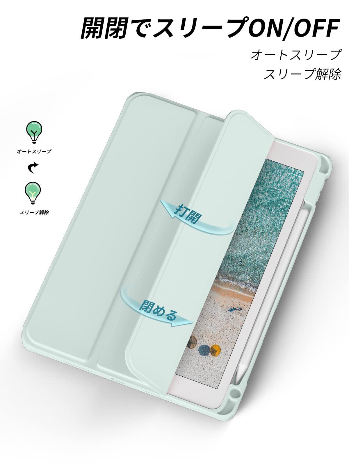 Aoub iPad 9世代 ケース 10.2 インチ iPad ケース 第9/8 /7世代 2021 2020 2019 透明バックカバー ペン収納 三つ折スタンド オートスリープ機能 軽量 薄型 傷つけ防止 PU合成レザー TPU (モデル番号A2602、A2603、A2604、A2605) ライトグリーン