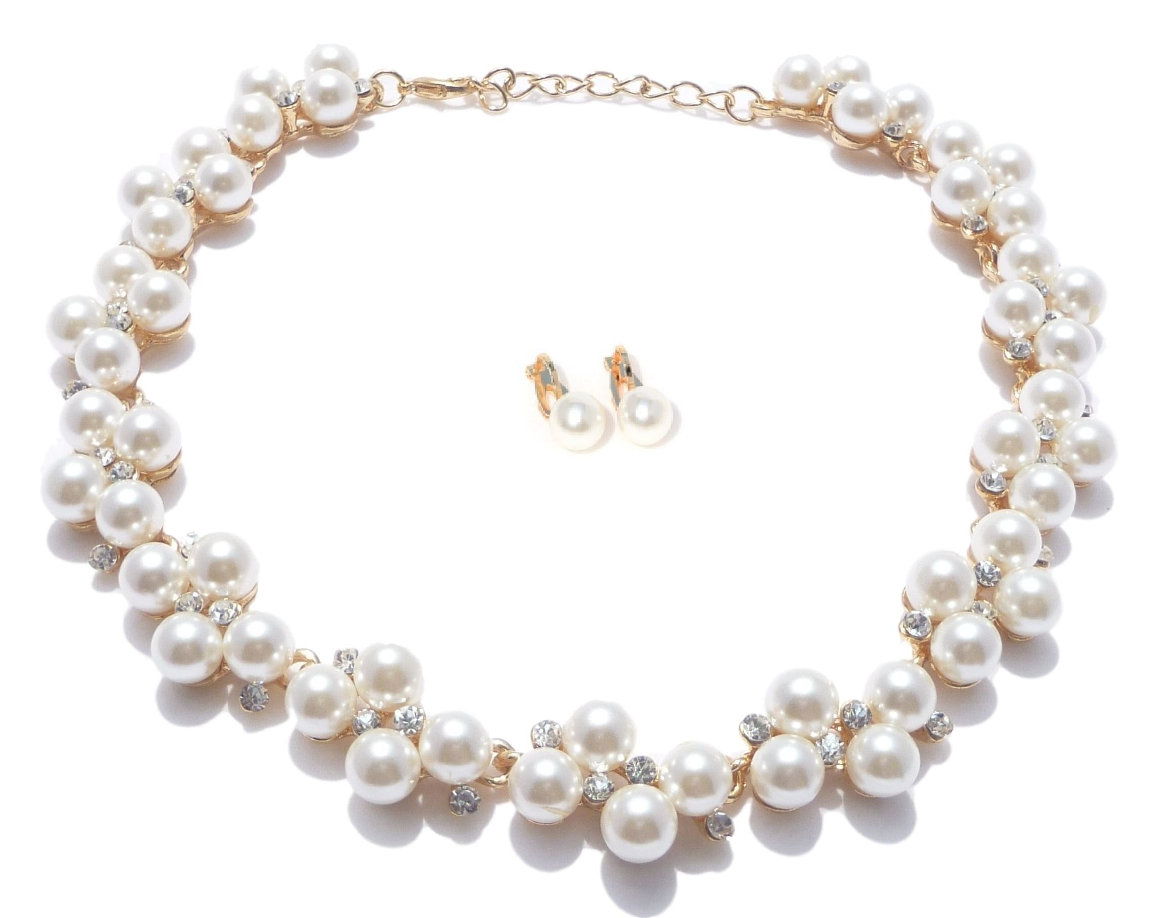 [N-Style] パール ラインストーン ビジュー ネックレス ピアス イヤリング セット レディース