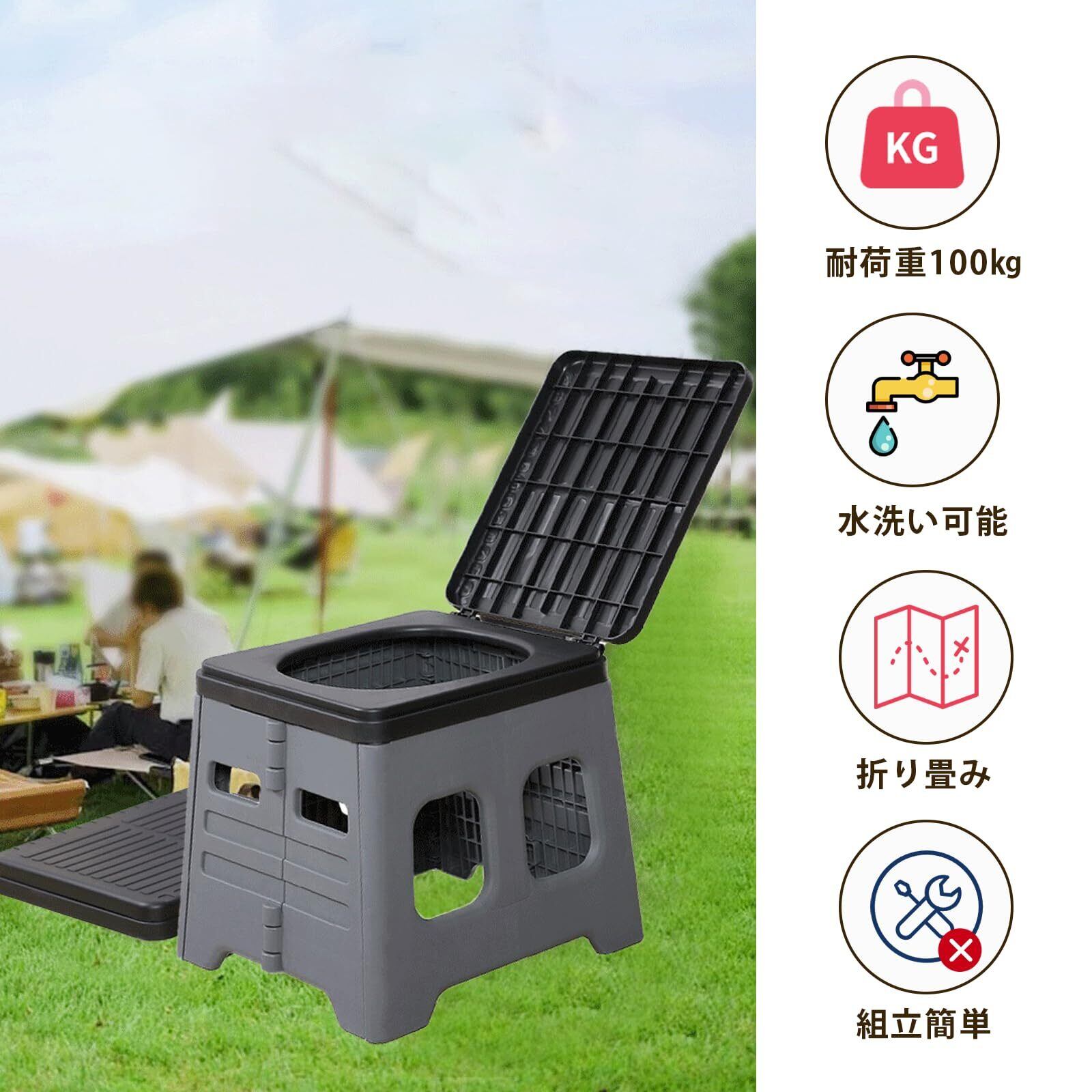 簡易トイレ 携帯トイレ 災害用 非常用トイレ 折り畳み 防災グッズ ポータブルトイレ Mサイズ 排便袋 アウトドア 耐荷重100㎏ 簡易トイレポータブルトイレ(ブラック&グレー)