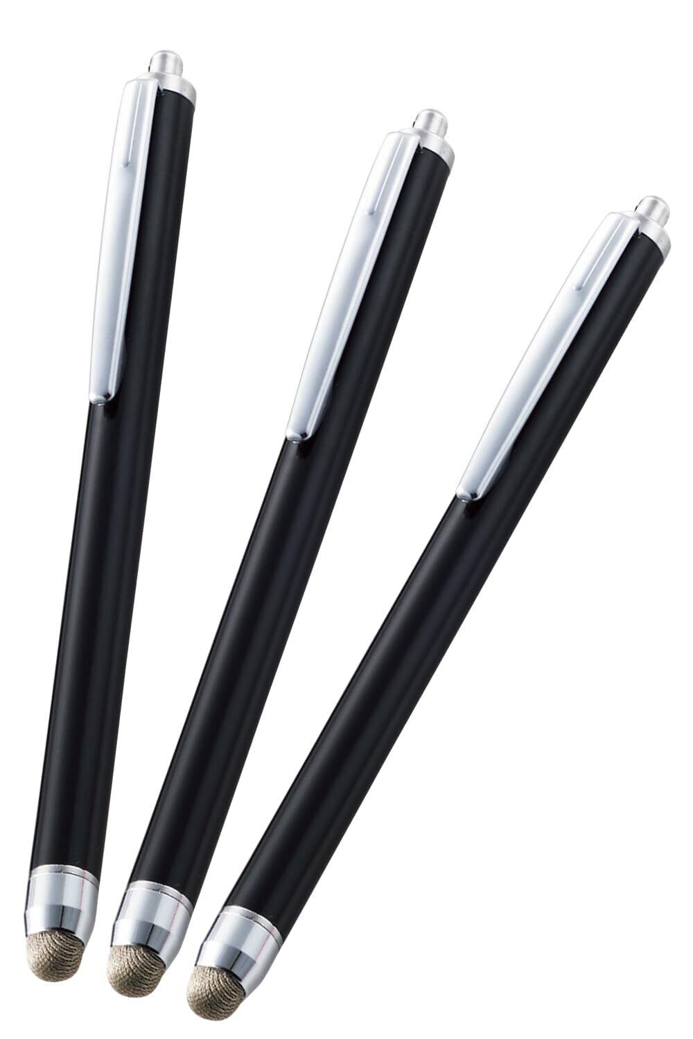 エレコム タッチペン スタイラスペン 3本入り 【iPad/iPhone/Android スマホ・タブレット各種対応】 導電繊維 クリップ付 ブラック PWTPS03BK/3