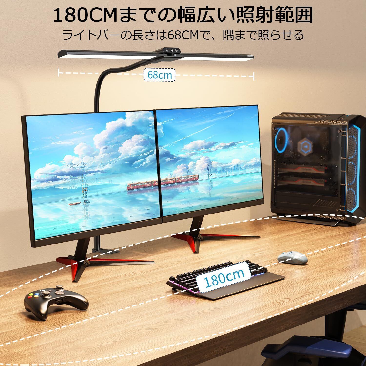 デスクライト LEDダブル光源電気スタンド KableRika 12W目に優しい卓上ライト クランプ式 4色温度・4段階調光・明るい高輝度 30分のタイマー 自動消灯 タッチパネル デュアルライトバー フレキシブルアーム おしゃれ ra90 PSE認証済